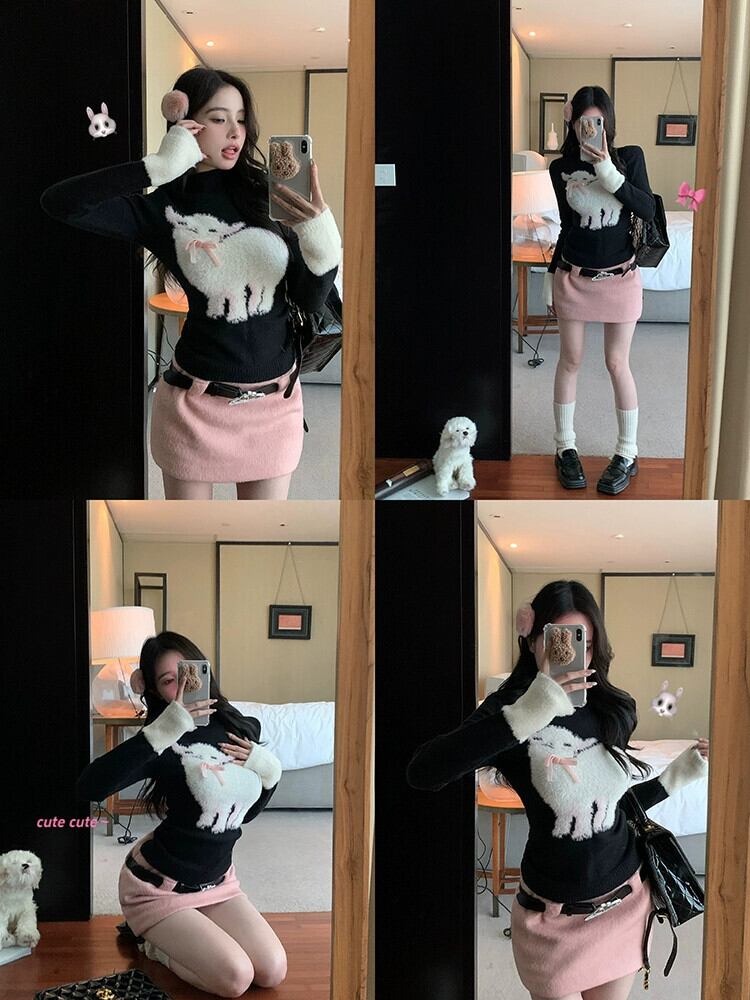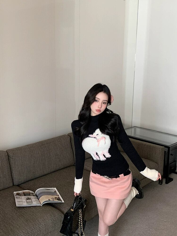 ラムジャカードラウンドネック長袖プルオーバーセーター女性 2024 春の新スリムフィットニッチニットセーターインナートップ ロング スプリング 春物 Oネック berry72279831101 | beaute25