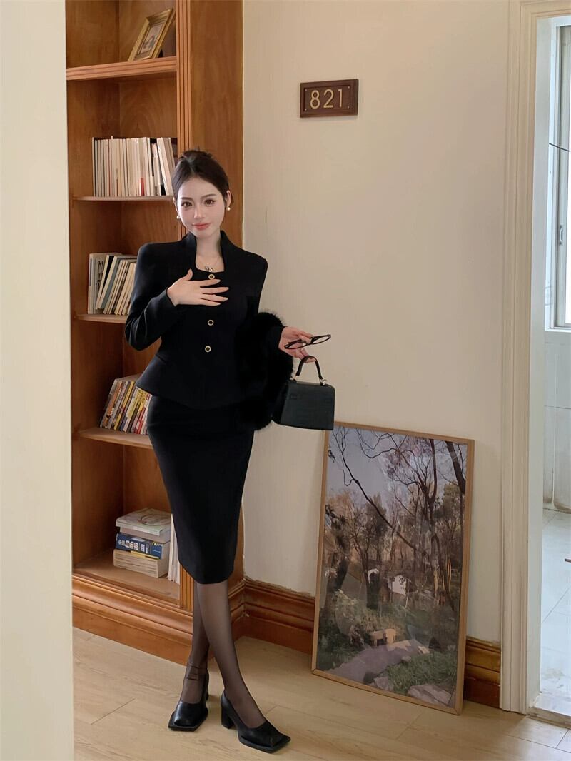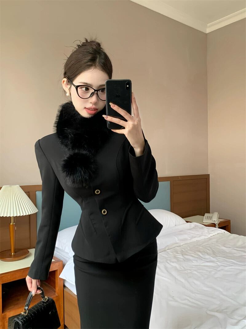 色:ジャケット+毛皮の襟,スカート