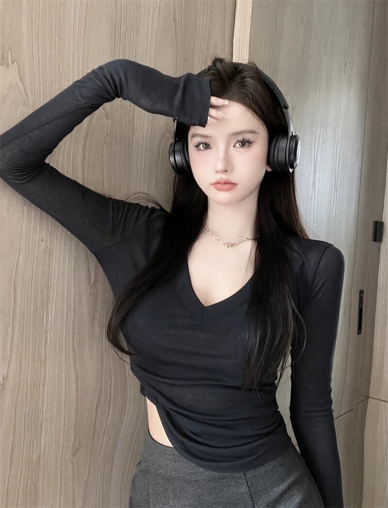 ホワイト Tシャツ レディース 春 V ネック セクシー タイト インナー 重ね着 シャツ スリム スリム 長袖 ショート トップ ロング スプリング 春物 Vネック berry84428409579 | beaute25