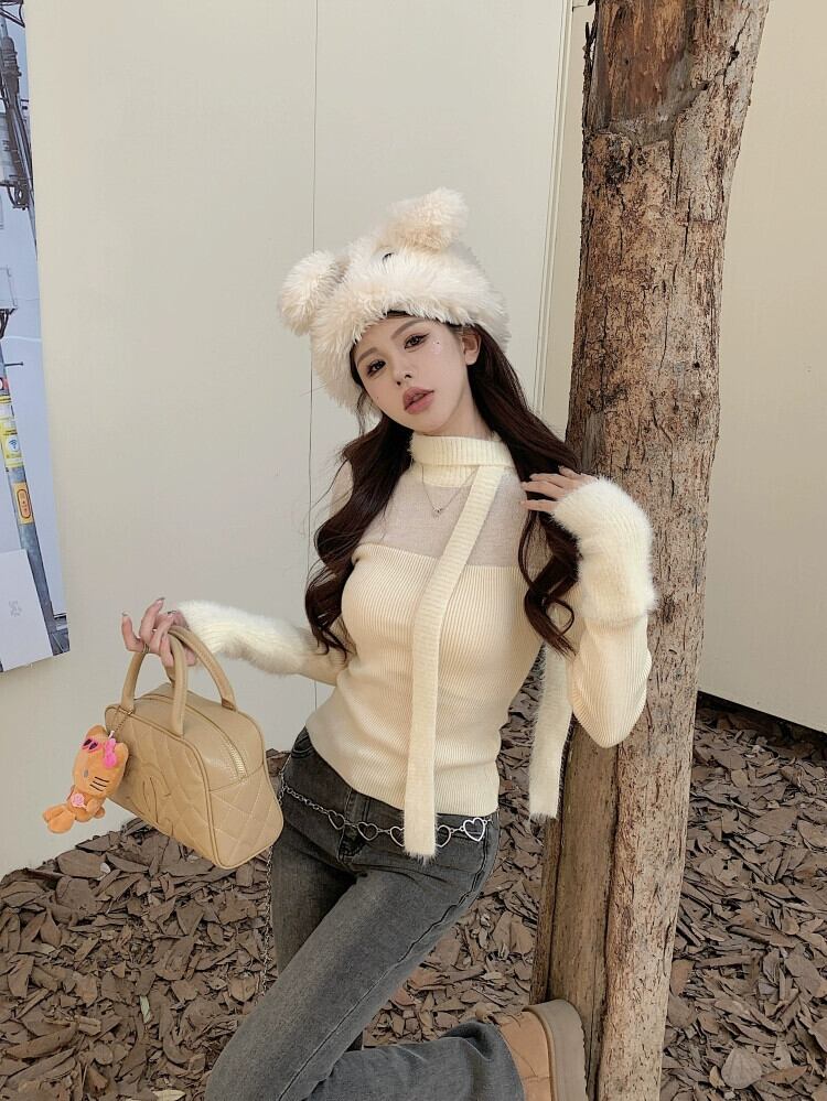 アプリコットシースルーハーフタートルネック長袖セータートップ女性春ウエストショート弾性インナーセーターボトミングシャツ ロング エラスティック 伸縮 スプリング 春物 berry15636505305 | beaute25