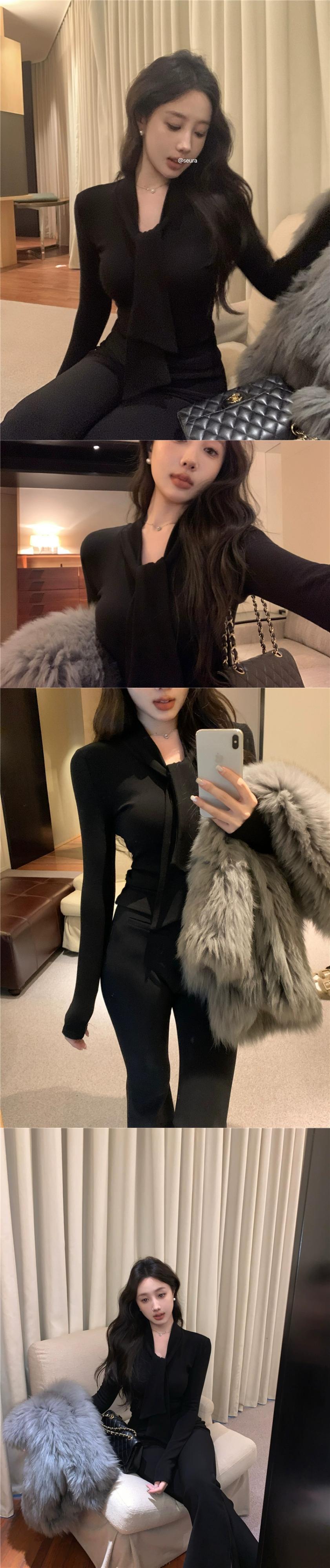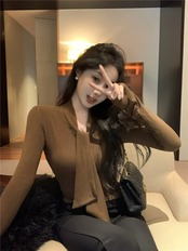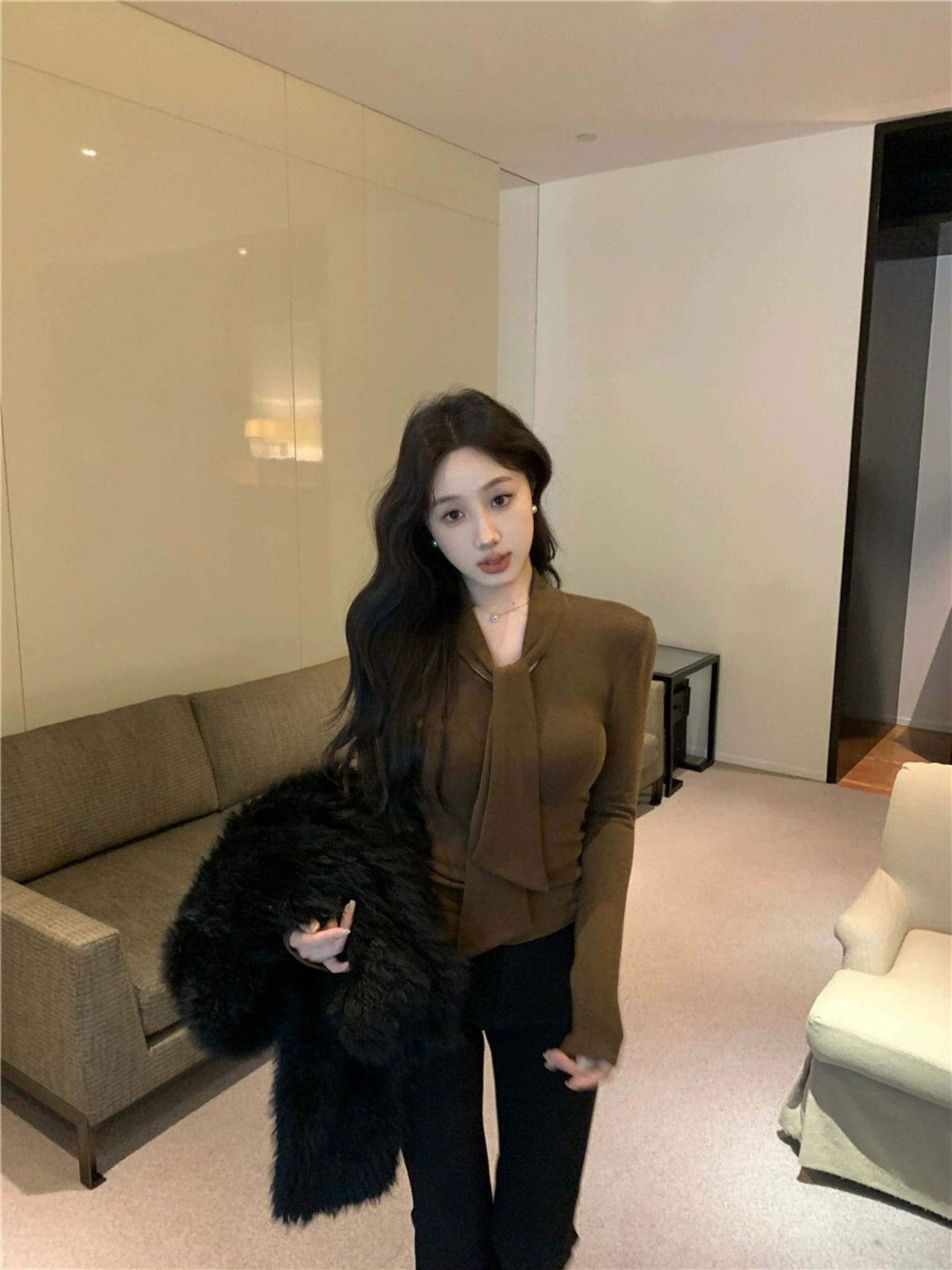 春先のコーヒー色の起毛レースアップ長袖 T シャツ、新しいスリムフィットのインナー レイヤリング、エレガントなボトリング シャツ、シックなトップス ロング レッド スプリング 春物 Tシャツ berry80952776031 | beaute25