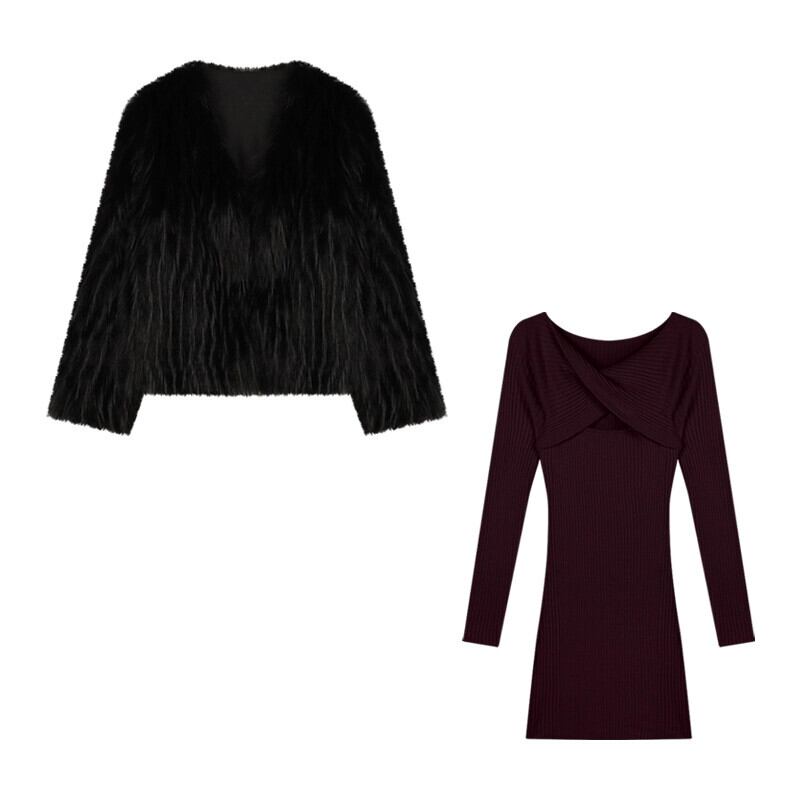 紫中空長袖ニットドレス女性春の純粋な欲望ネクタイセクシーなインナースカートタイトなヒップハグショートスカート ロング スプリング 春物 ピュア パープル berry24223809405 | beaute25