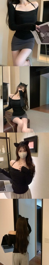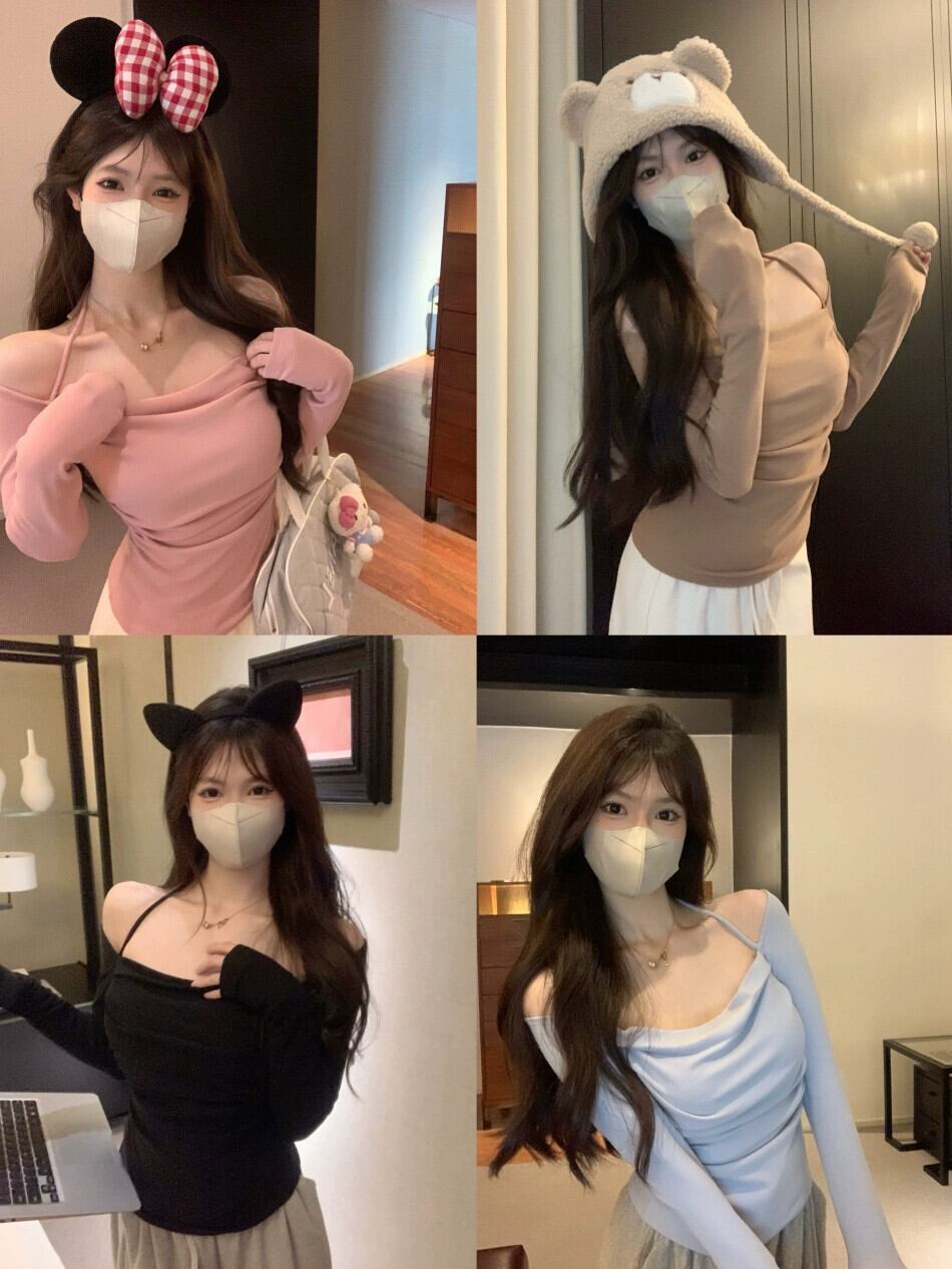 ピンクのワンショルダー鎖骨ホルターネックボトリングシャツ長袖 Tシャツ女性春純粋な欲望スタイルスリムプリーツインナートップ ロング スプリング 春物 ピュア berry65963221150 | beaute25