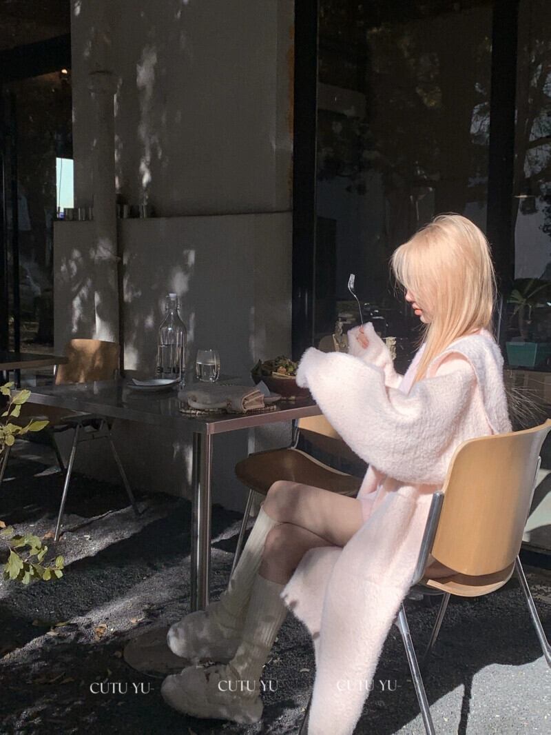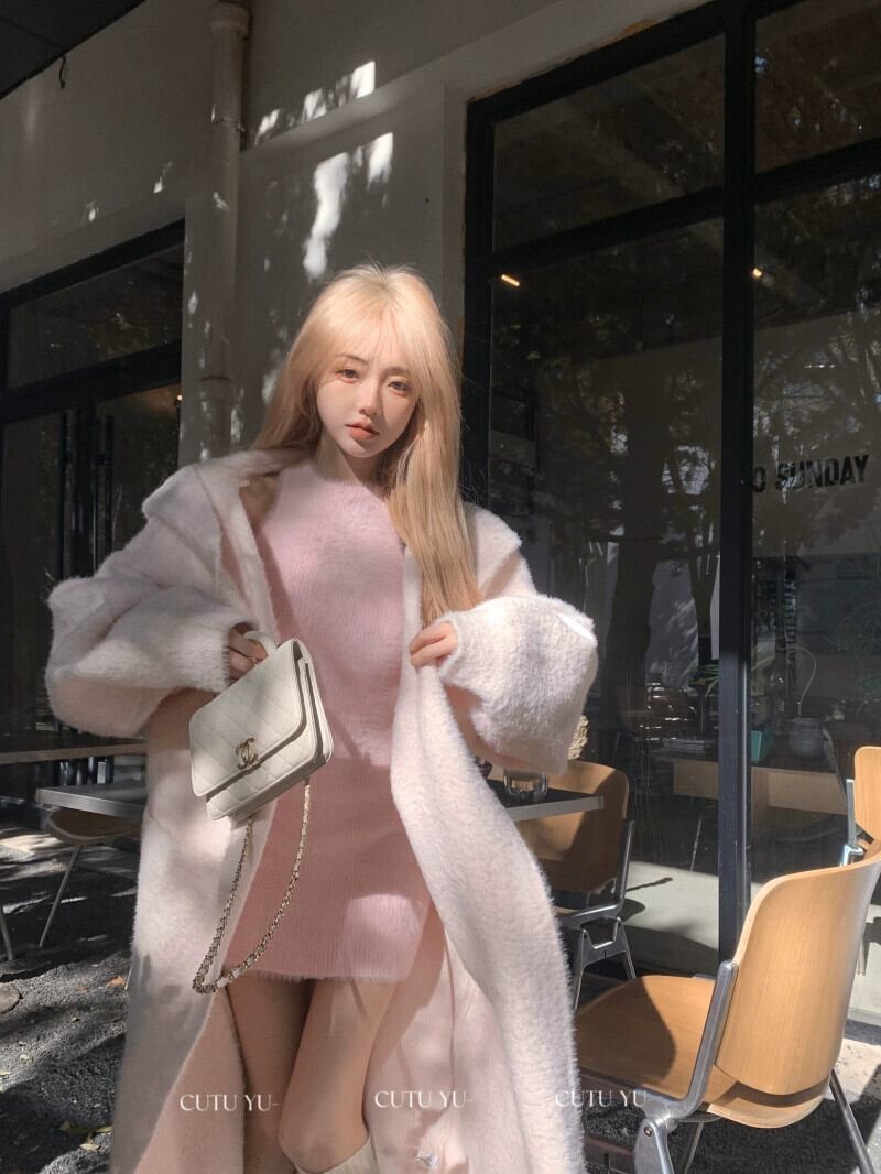 柔らかくワックス状のフード付きミッドレングスセータージャケットレディース、春と秋のピンクのニットカーディガン、ゆったりしていてコートと合わせて着るのがとても素敵です スプリング 春物 オータム 秋物 berry66202367476 | beaute25