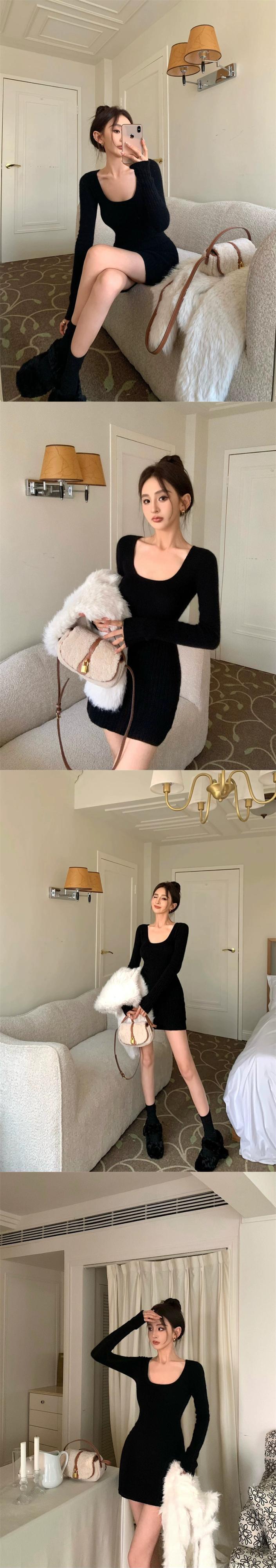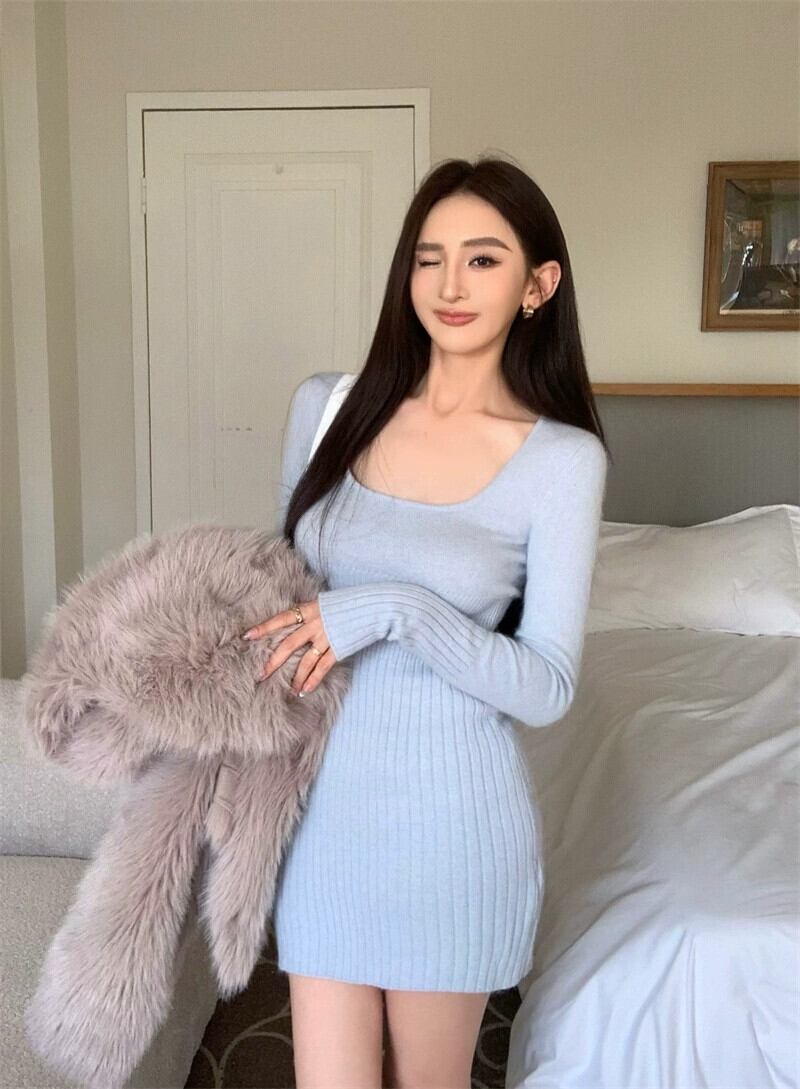 冬の長袖スクエアネックニットドレス女性、ウエストを締める伸縮性のあるスリミングヒップハグショートスカート、ボトムセータースカート付き ロング エラスティック ウィンター 冬物 スクウェア berry5532483669 | beaute25