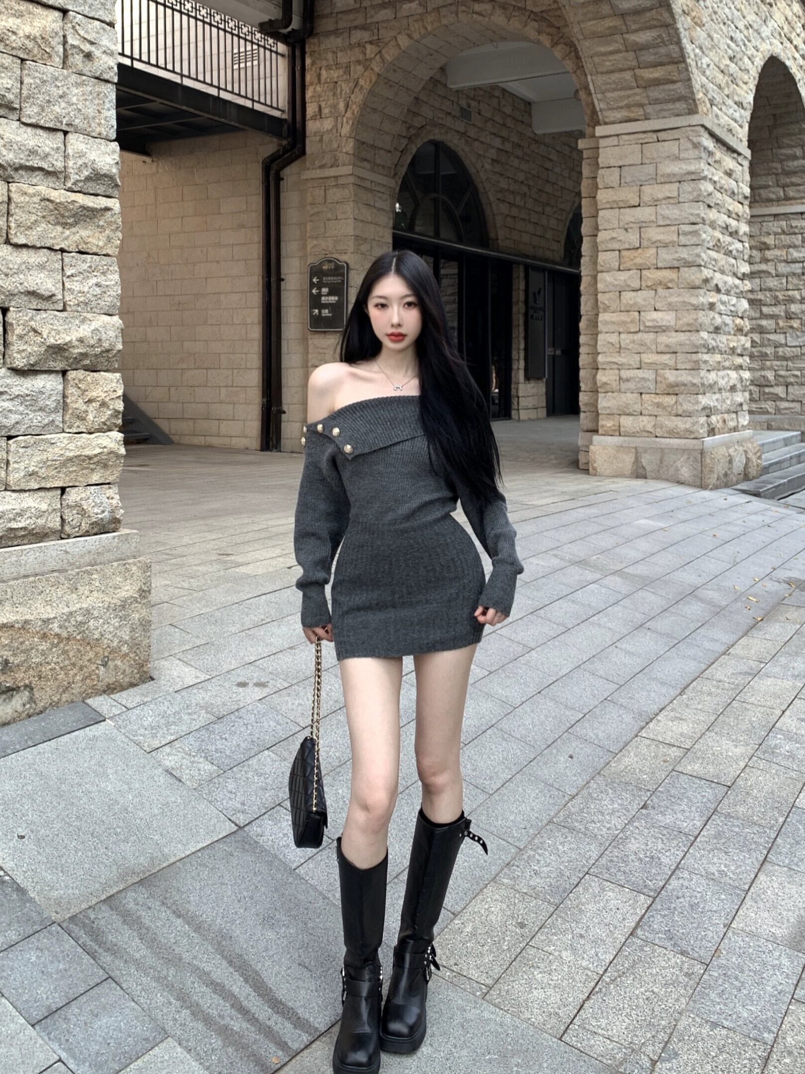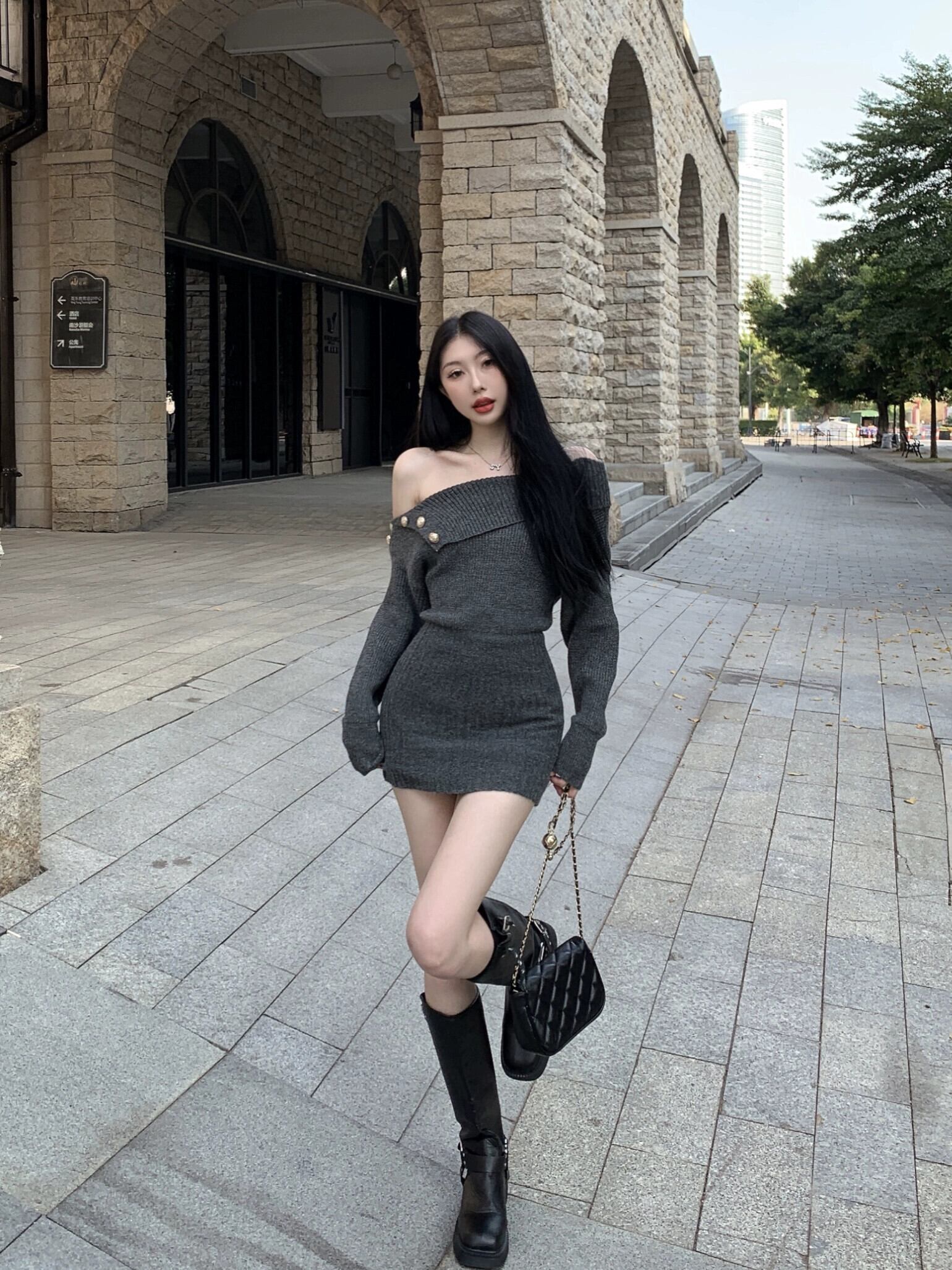 ワンショルダー長袖セーターニットドレスレディース春純粋な魅力的なセクシーなインナーウェアタイトヒップハグショートスカート ロング スプリング 春物 ピュア berry69019267020 | beaute25