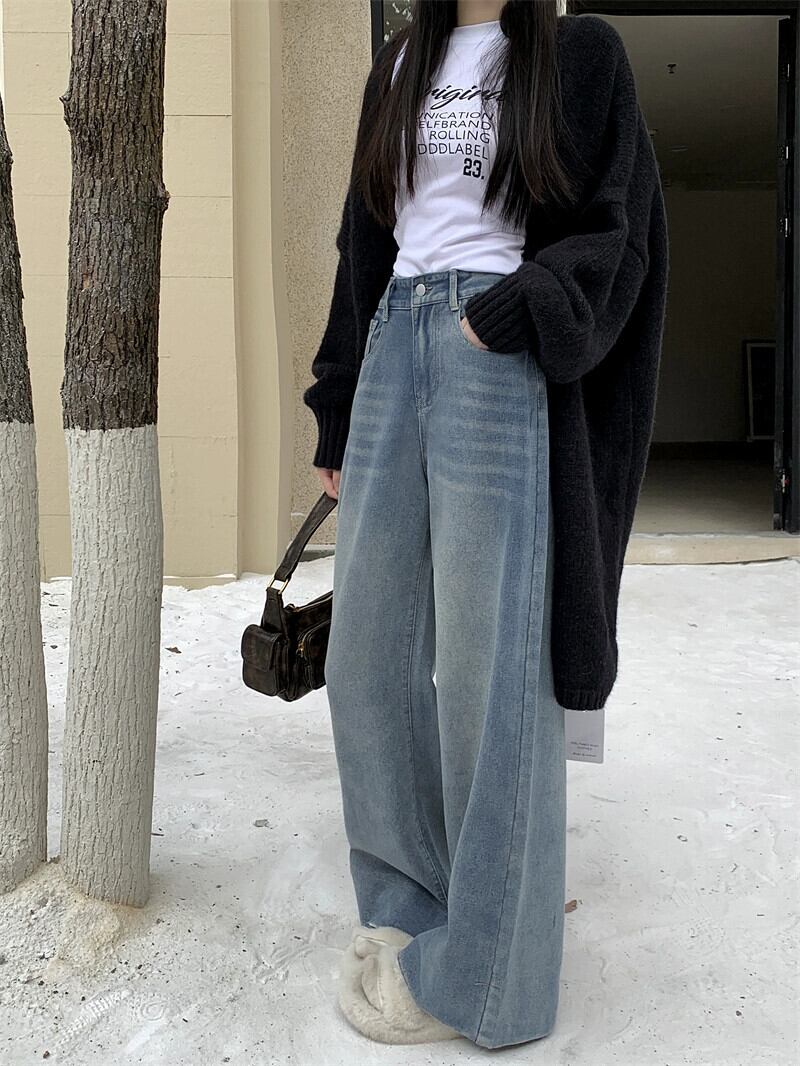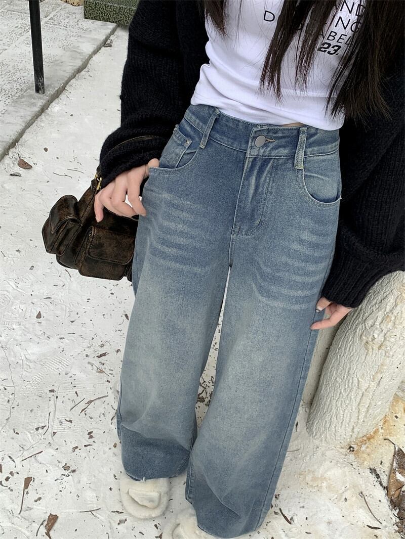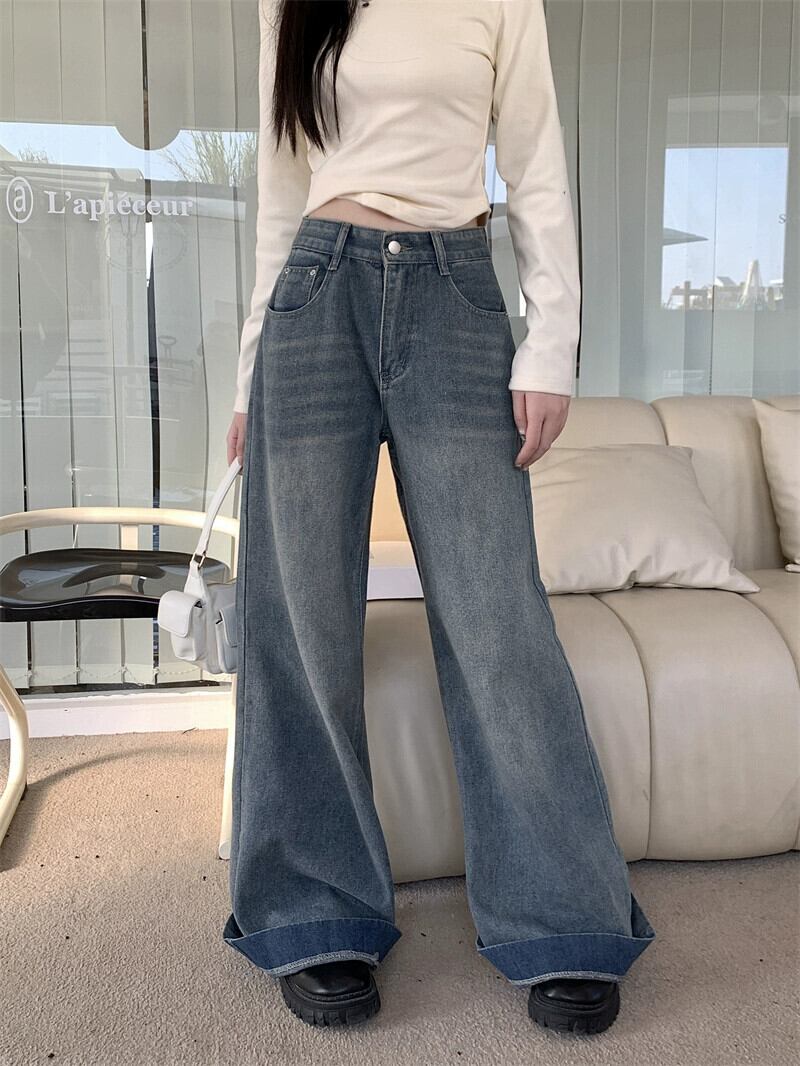 ブルー ワイドレッグ ジーンズ レディース 春 アメリカン レトロ 小さい ローウエスト ルーズ ストレート パンツ フロアレングス ズボン スプリング 春物 berry23606956484 | beaute25