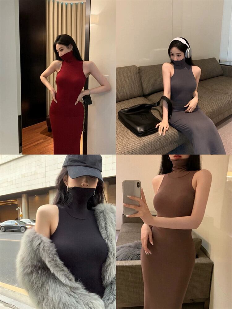 赤いタートルネックノースリーブベストドレス女性春インナースカート底スカートロングスカートタイトなセクシーなヒップスカート レッド スプリング 春物 berry86098953381 | beaute25