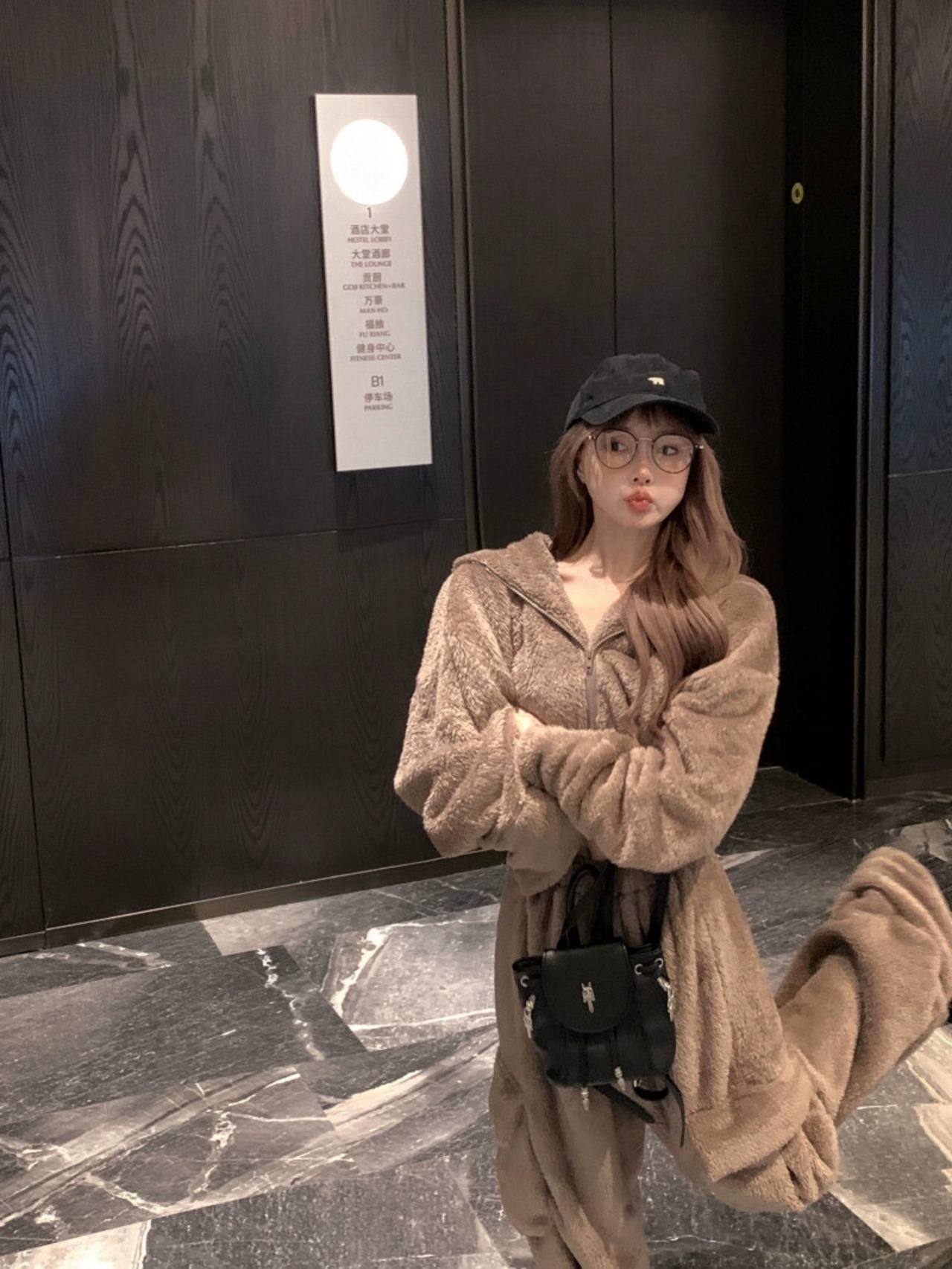 豪華なフード付きジッパーショートジャケット、ファッショナブルなスーツ、冬のワイドレッグカジュアルパンツ、怠惰な女性の2点セット ウィンター 冬物 berry20367007858 | beaute25