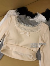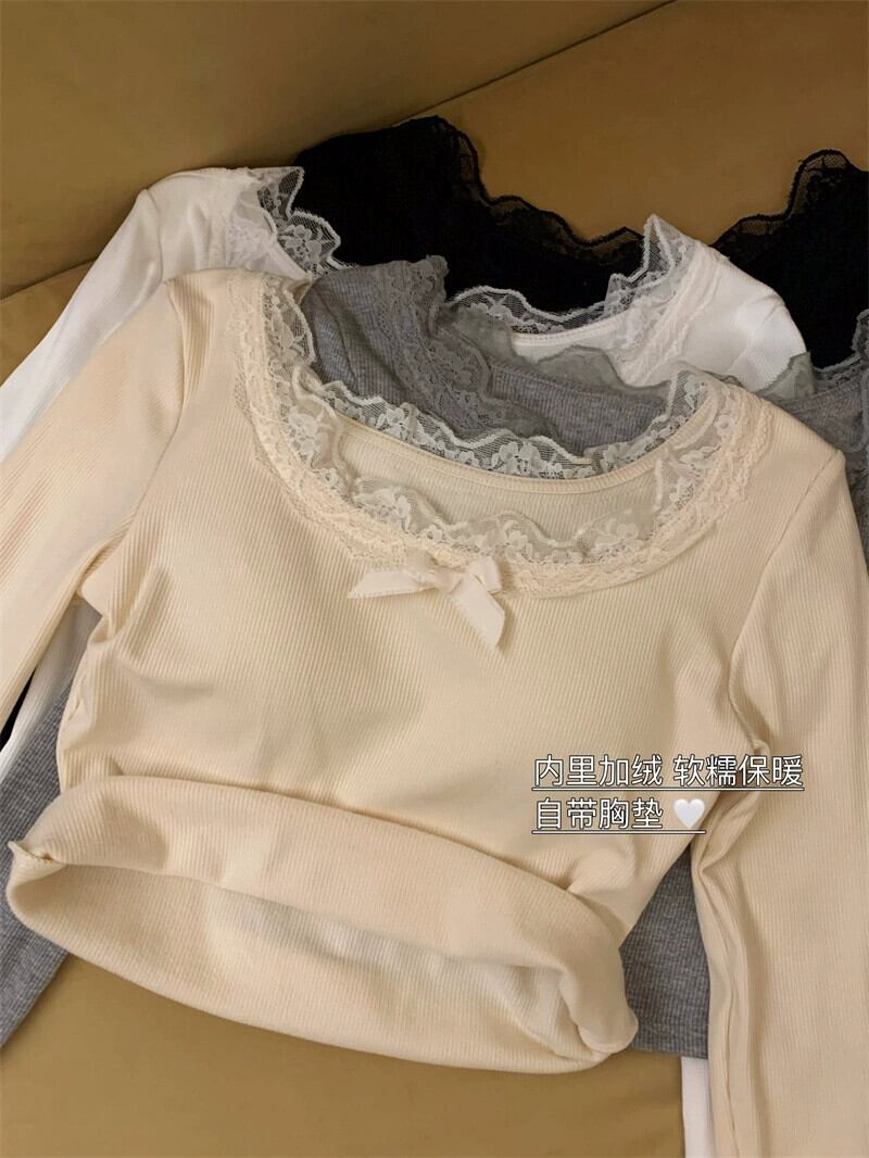 レースプラスベルベットボトムシャツ、長袖Tシャツレディース、春、スリムフィット、胸パッド付きショートスタイル、ピュアラストスタイルトップ ロング スプリング 春物 berry8070173873 | beaute25