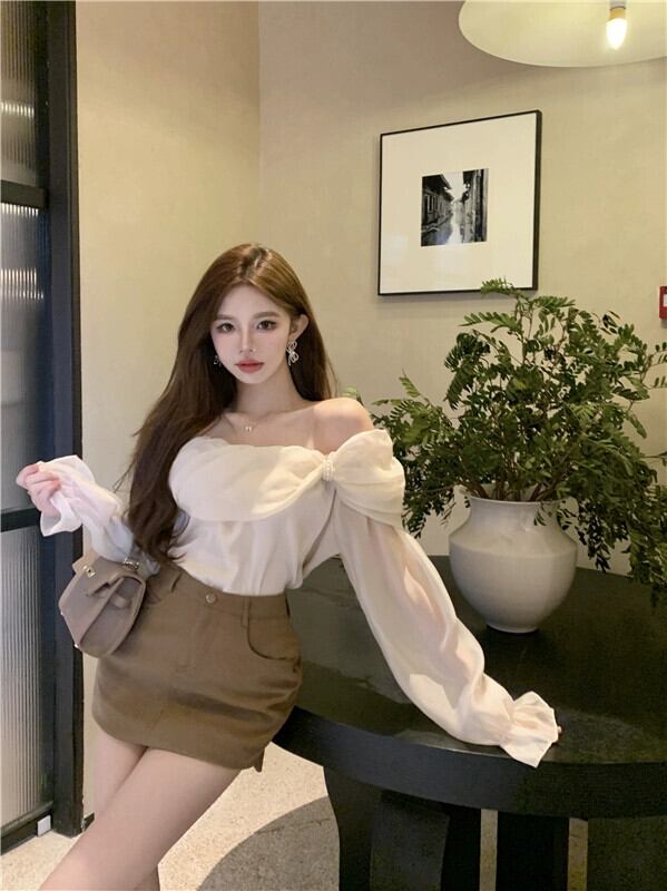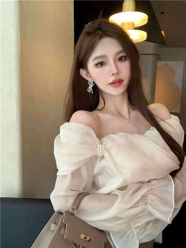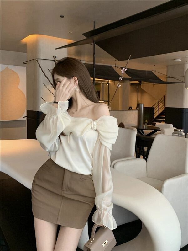 優しい風ワンショルダー長袖シャツ女性春甘いスリムショートシャツデザインニッチオフショルダートップ ロング 大人ガーリー スウィート キュート カジュアル スプリング 春物 berry86604782895 | beaute25