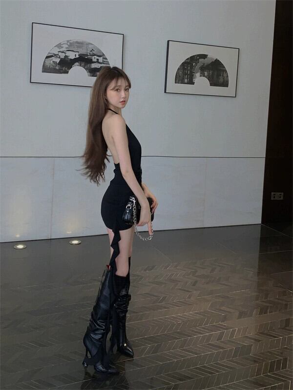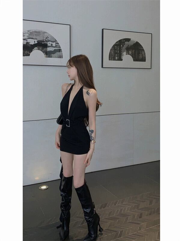 黒の v ネックホルターネックドレス女性の夏のスカート大きな背中の開いたウエスト痩身セクシーなヒップハグスカートショートスカート ブラック サマー 夏物 Vネック berry3993766694 | beaute25
