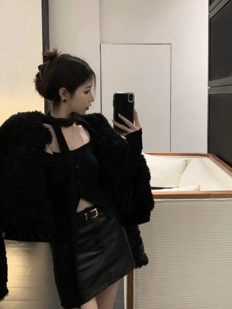黒スクエアネックニットカーディガン女性 2024 春の新スリムウエストシックなボトリングシャツ長袖インナートップ ロング ブラック スプリング 春物 スクウェア berry54058442313 | beaute25