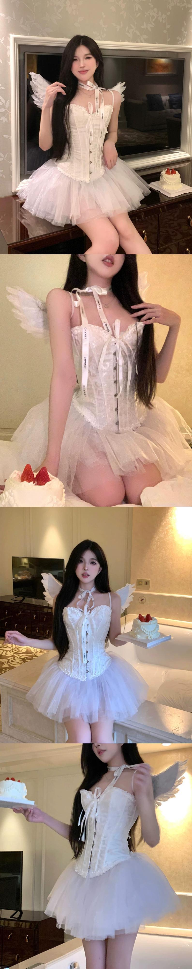 色:白いチューブトップ,アプリコットチューブトップ,白いスカート,アプリコットスカート