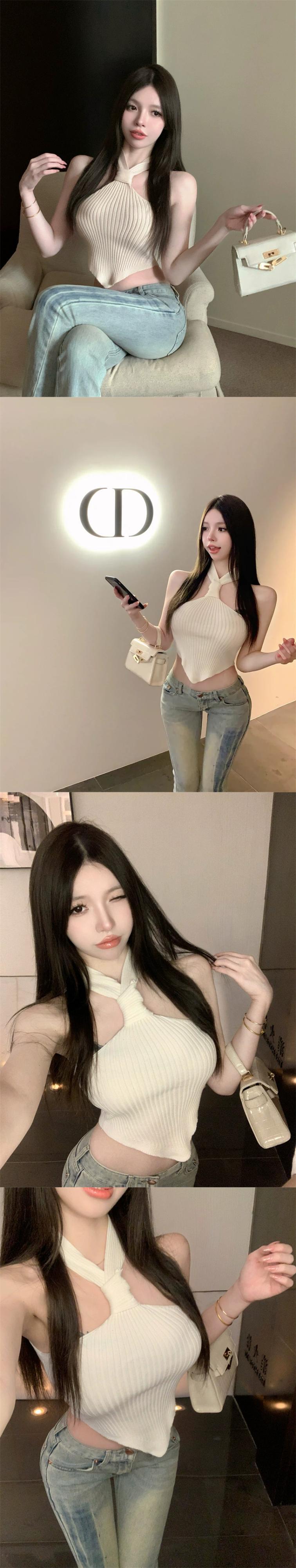 Pure lust スタイル ニット ホルターネック キャミソール 秋冬 レディース、セクシー インナー、イレギュラー スリム ショート トップ、アウター オータム 秋物 ウィンター 冬物 berry9653383797 | beaute25