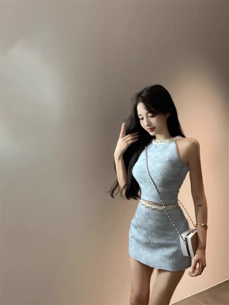 Xiaoxiangfeng スカート 2 点セット女性のノースリーブベストトップ夏のハイウエストヒップスカート純粋な欲望痩身スーツ ハイウェスト サマー 夏物 ピュア berry77415795549 | beaute25