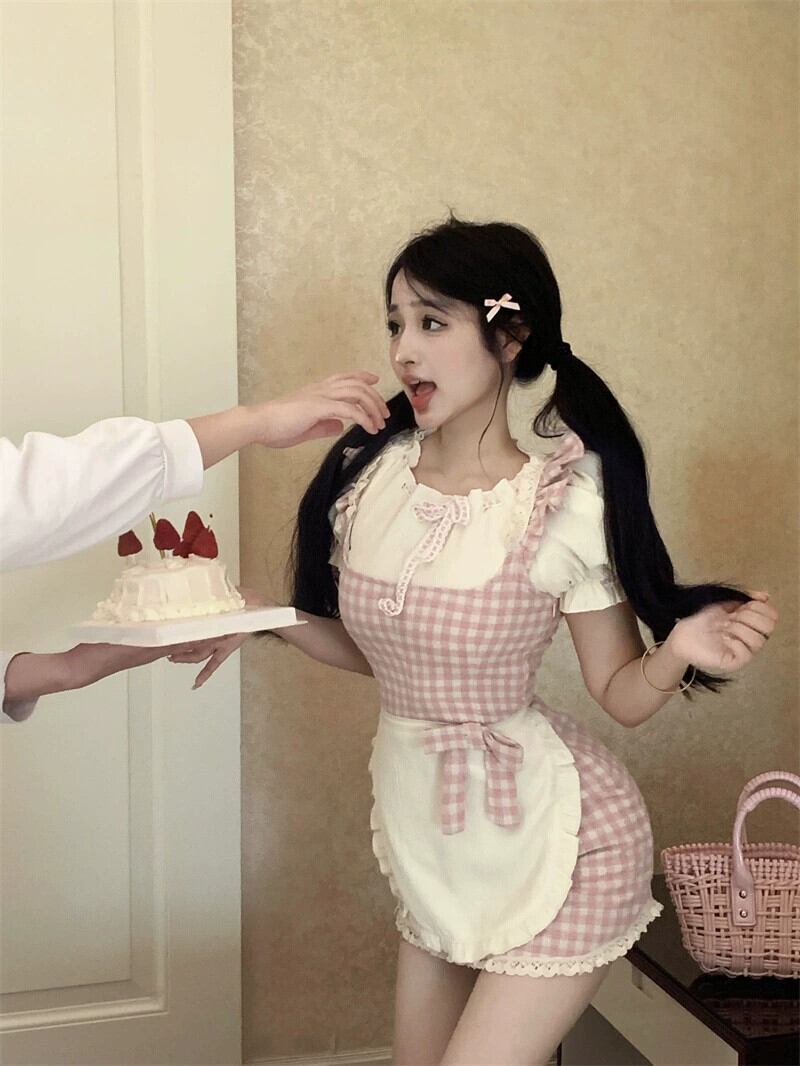 甘いチェック柄サスペンダードレスレディースサマースカート牧歌的なスタイルスクエアネックセクシーなヒップカバースカートショートスカートツーピースセット 大人ガーリー スウィート キュート カジュアル 夏物 スクウェア berry4903762755 | beaute25