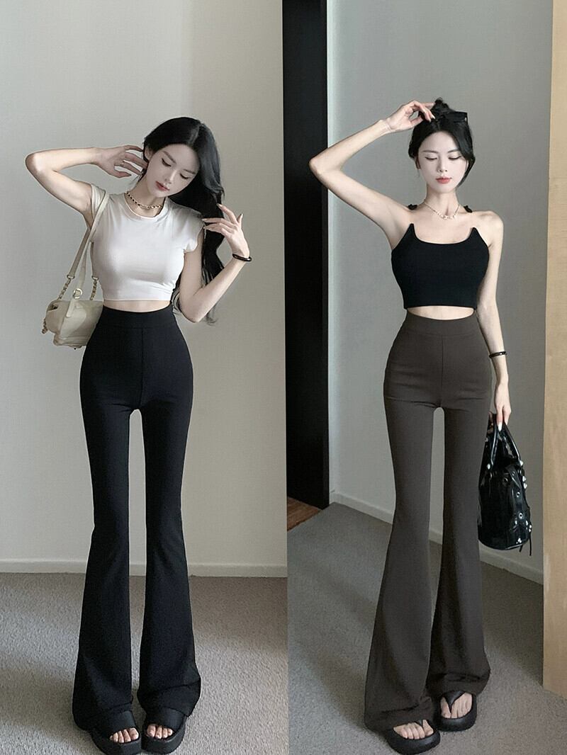 アイスシルクドレープハイウエストカジュアルパンツ女性の夏のストレートパンツヨガマイクロフレアパンツを着用する黒の馬蹄パンツ ハイウェスト レッド ブラック サマー 夏物 berry55093406150 | beaute25