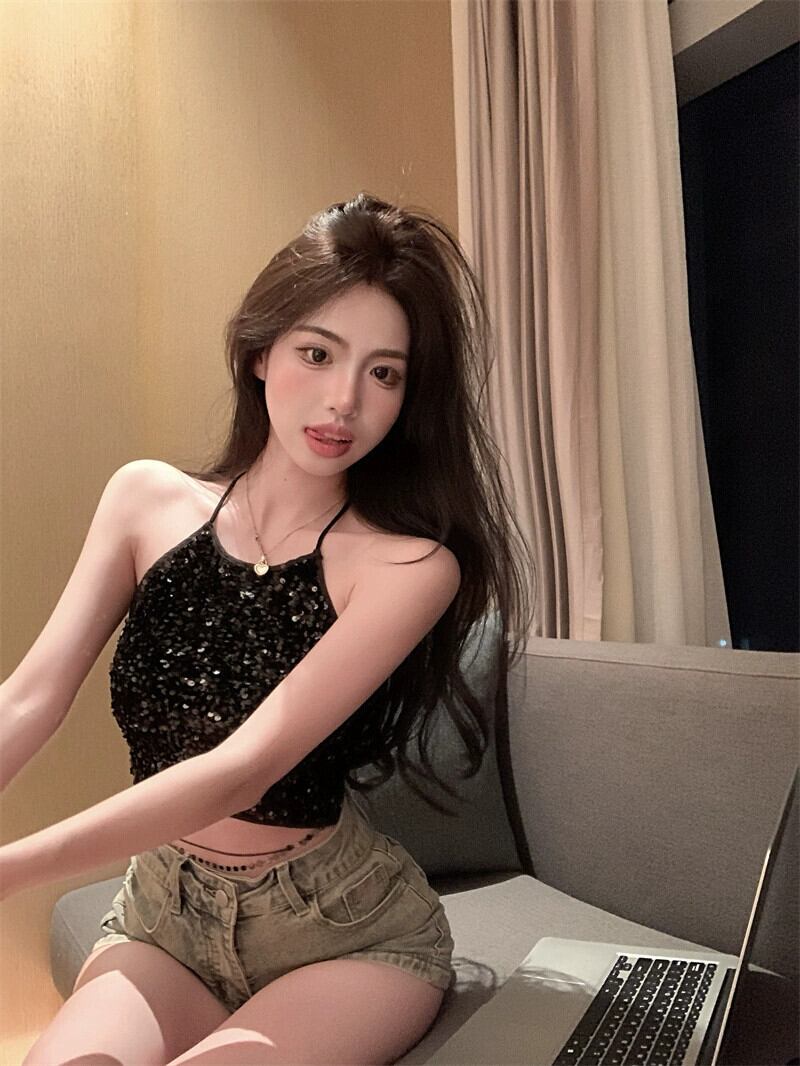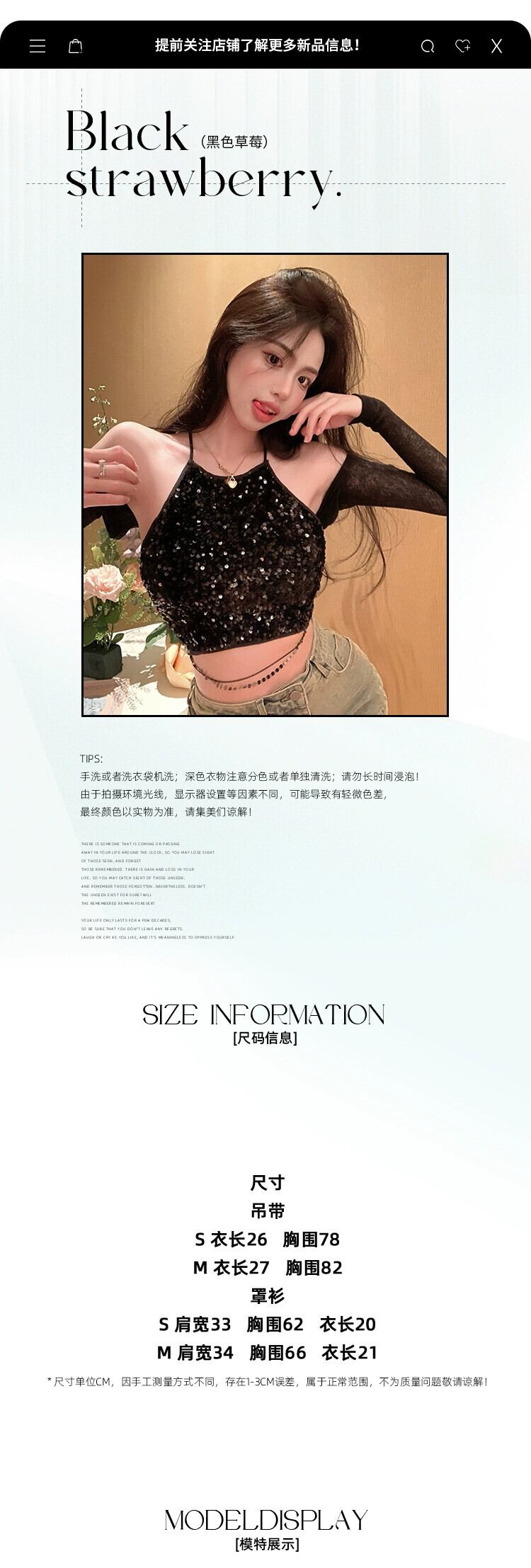黒のセクシーなスパンコール付きホルターキャミソールトップ 2 点セット女性の春の日焼け止めチョッキニットカーディガンセット ブラック スプリング 春物 berry9942362048 | beaute25