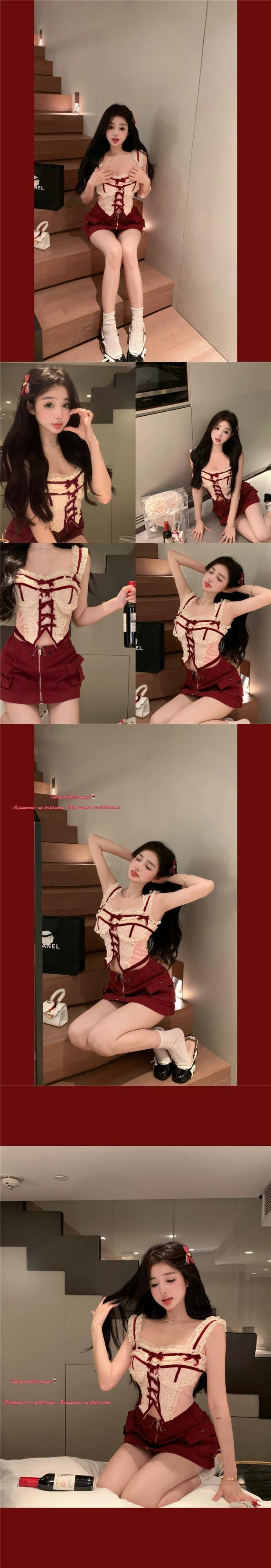 甘い重工業レーススプライシングベスト小さなサスペンダー女性の夏のインナーボウセクシーなショートトップ着用外 リボン 大人ガーリー スウィート キュート カジュアル サマー 夏物 berry65773824314 | beaute25