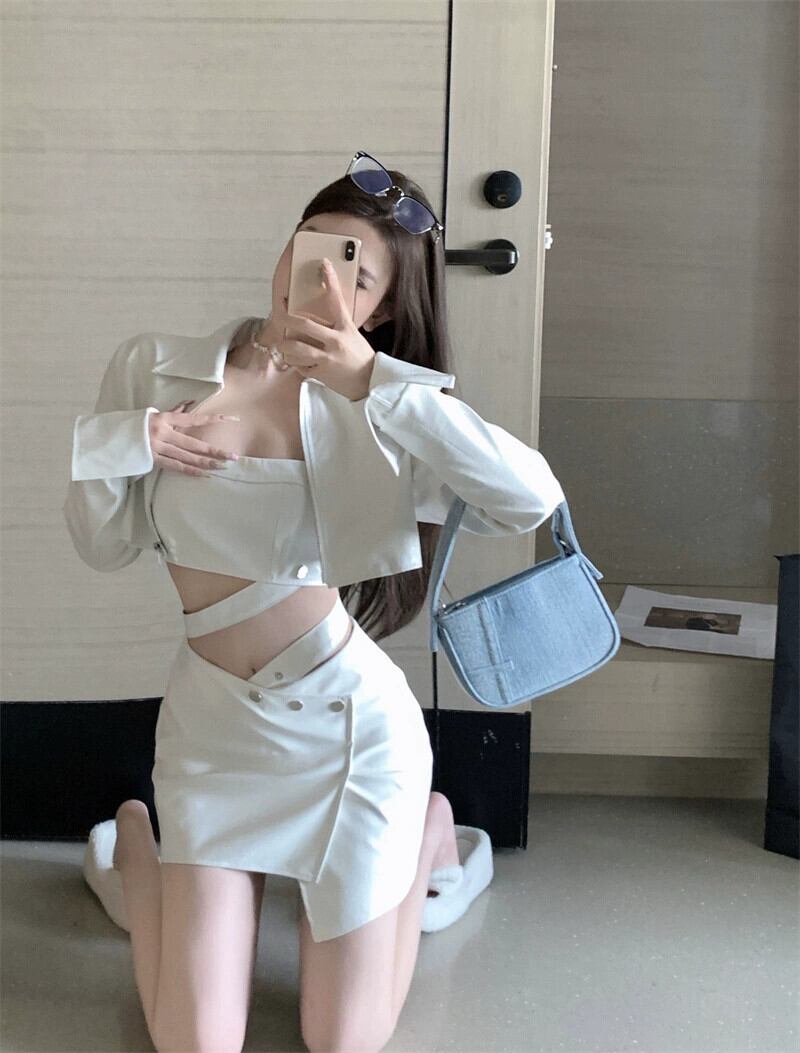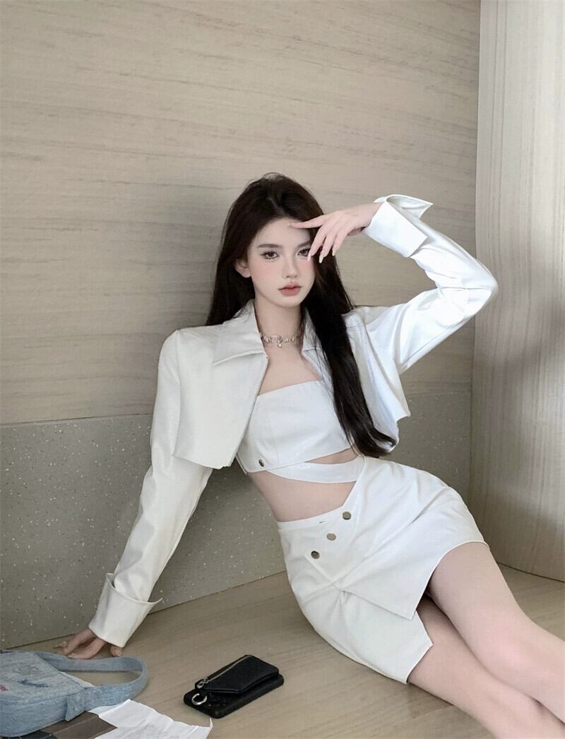 気質ロイヤルシスタースーツレザージャケットセクシーなチューブトップベスト女性秋と冬不規則なヒップカバースカート 3 点セット オータム 秋物 ウィンター 冬物 berry24622241124 | beaute25