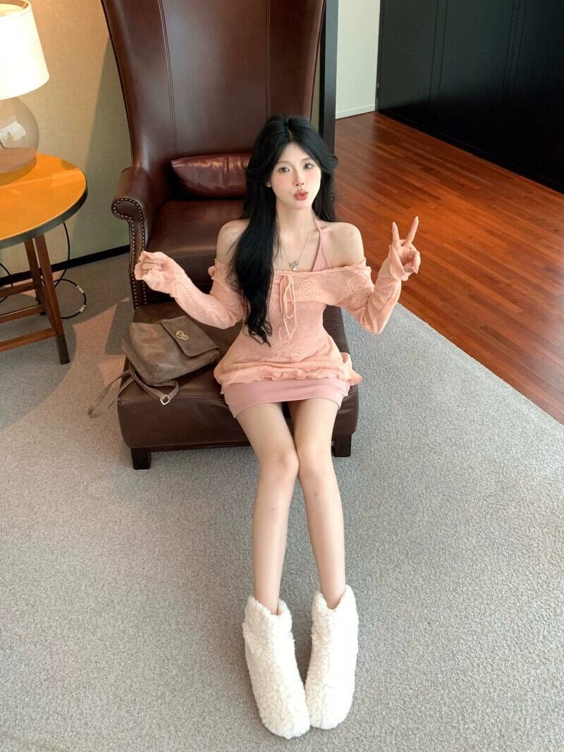 色:ホルターバッグヒップスカート,オレンジピンクのブラウス