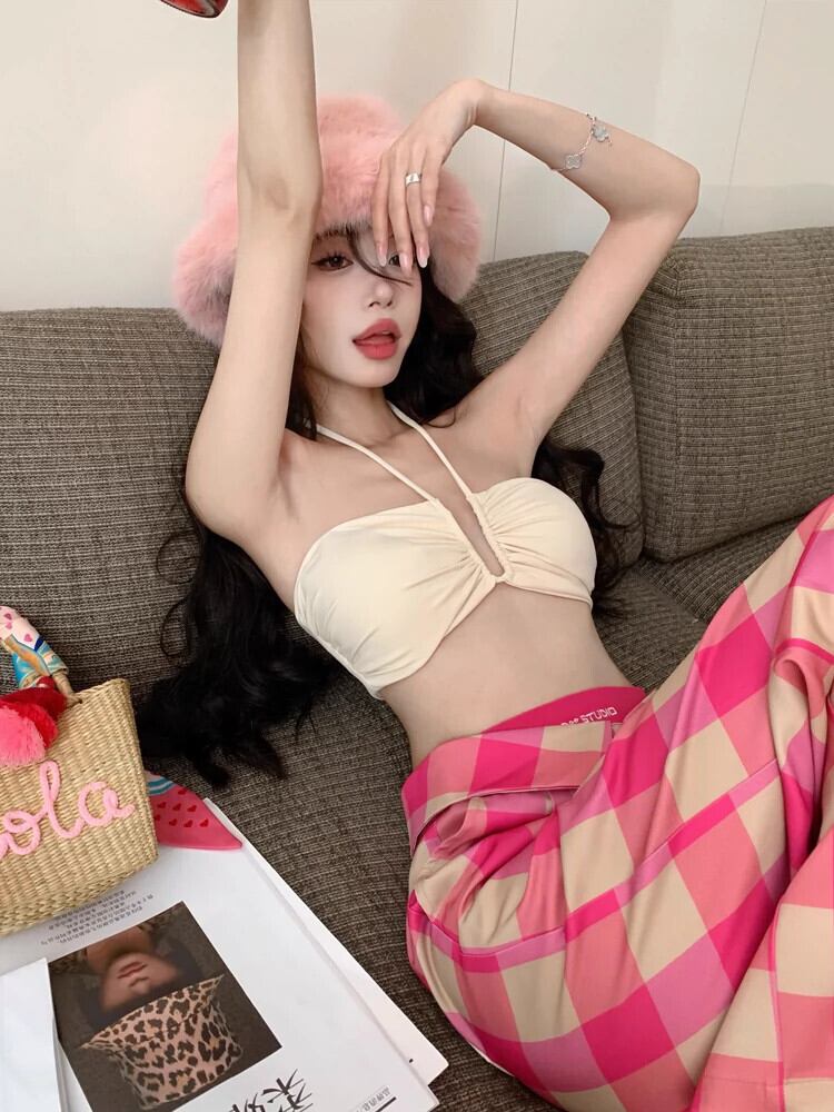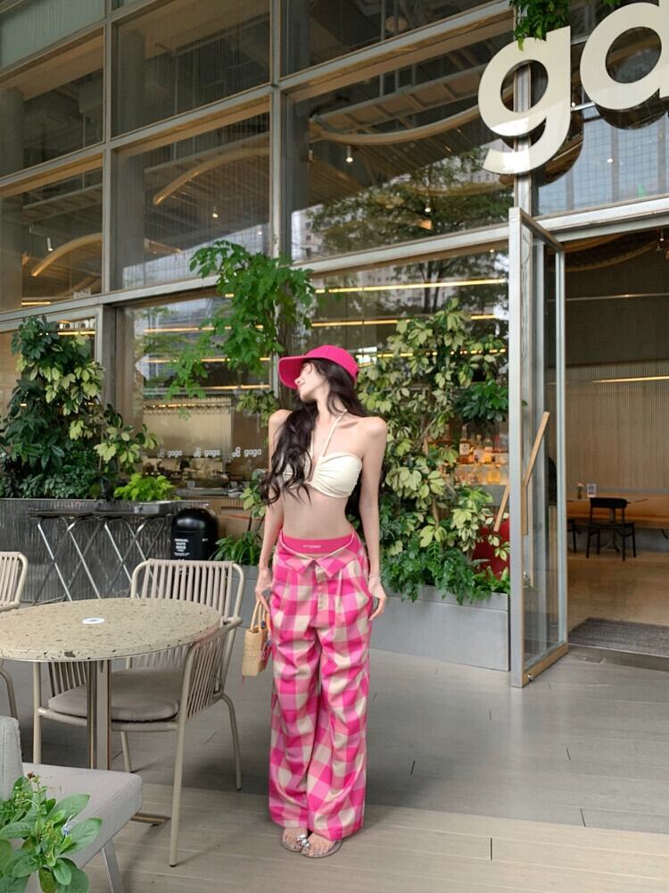 セクシーなビキニ ホルターネック キャミソール スーツ レディース 夏 チェック柄 ワイドレッグ カジュアル パンツ 2 点セット サマー 夏物 berry48142269388 | beaute25