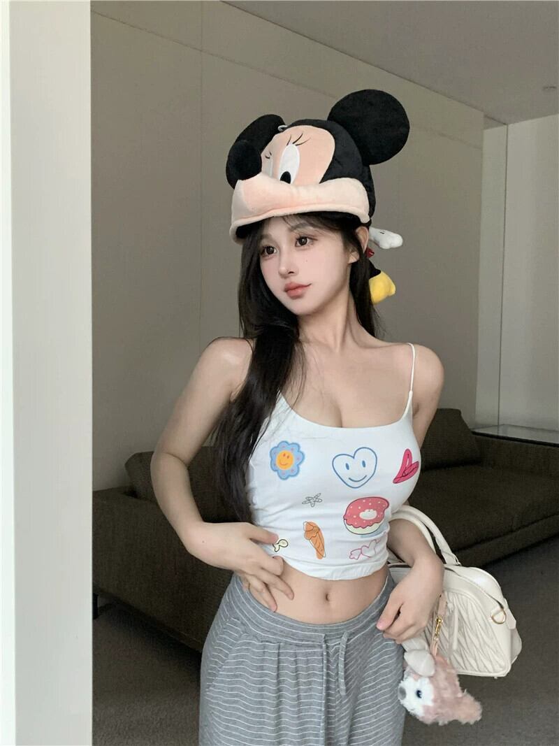 純粋な欲望のセクシーなホワイトプリントの小さなキャミソール胸パッド付き女性は夏に着用し、甘いホットガールのショートトップスを外で着用します 大人ガーリー スウィート キュート カジュアル サマー 夏物 berry12286333010 | beaute25
