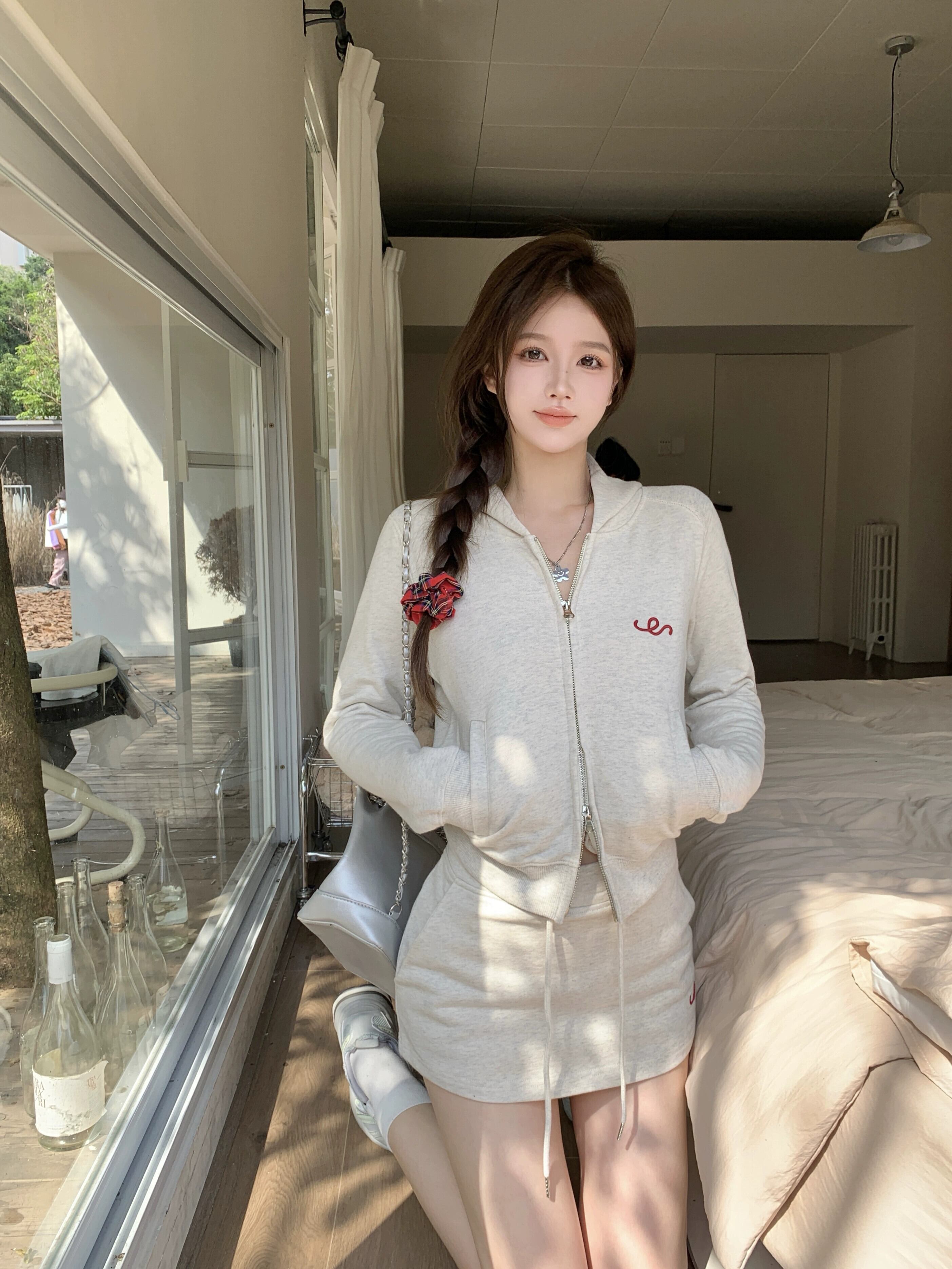 色:オートミールグレーのコート,オートミールグレーのスカート,ネイビーブルーコート,ネイビーブルーのスカート