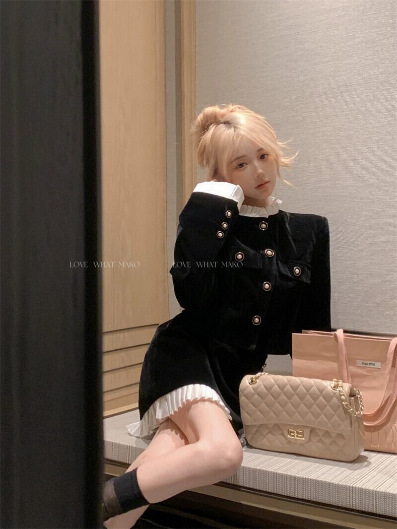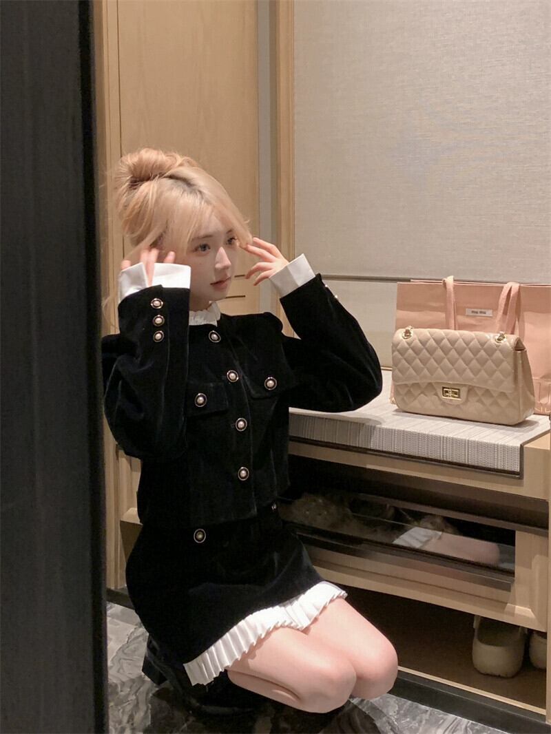 ドラマ Xiaoxiang スタイルのベルベットのジャケットヘップバーンスタイルの高級ドレススーツの女性の春のスカートとショートスカートの 2 点セット スプリング 春物 berry38352031324 | beaute25
