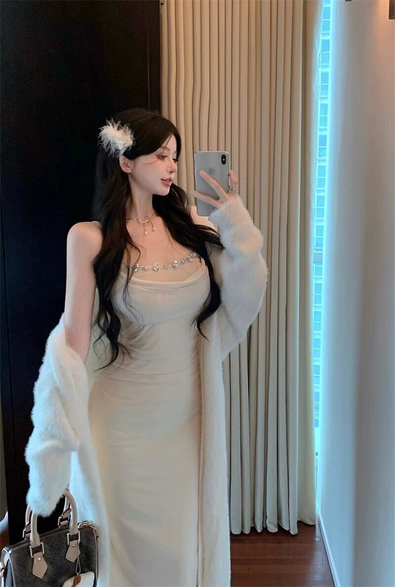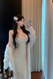 色:ドレス,カーディガン