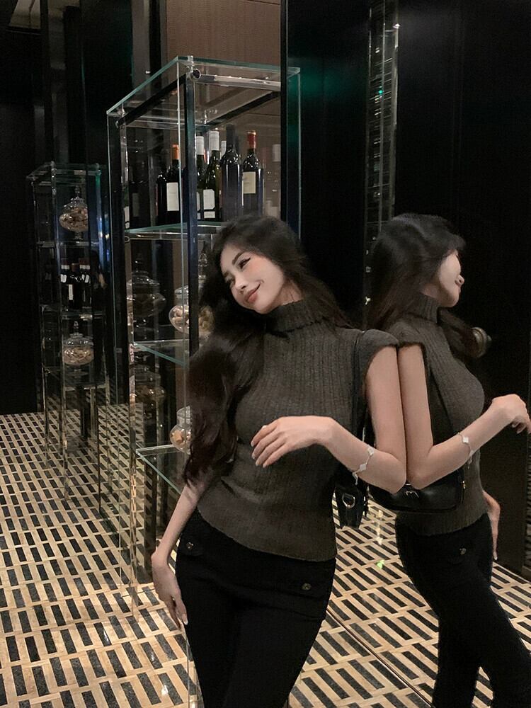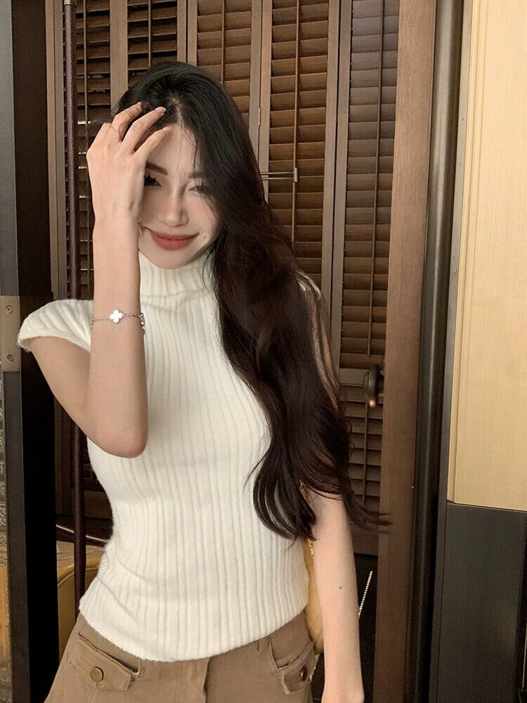 春のグレーのタートルネックセーターレディース、スリムフィット、タイトフィット半袖インナーセーター、ボトムシャツ、ショートトップ小柄な人向け スプリング 春物 berry36878078913 | beaute25