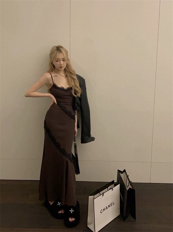 純粋な欲望のセクシーなサスペンダードレス女性の夏のレースのスプライシングスカートウエスト痩身気質ヒップハグフィッシュテールロングスカート サマー 夏物 berry44928953396 | beaute25