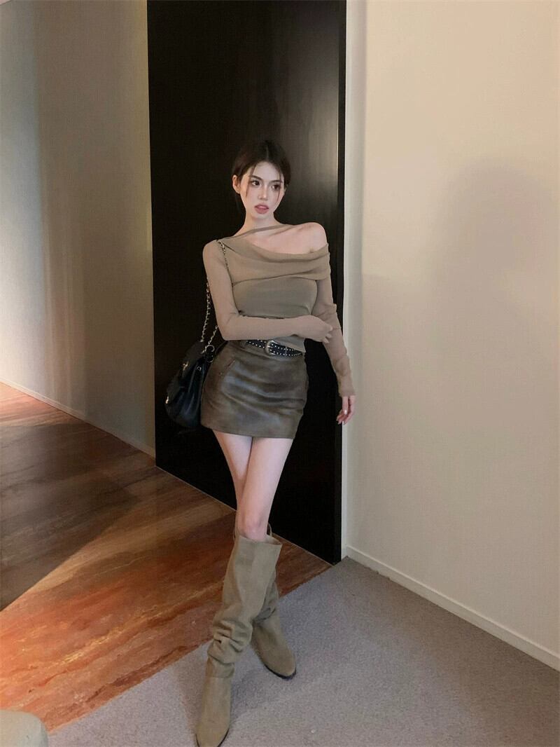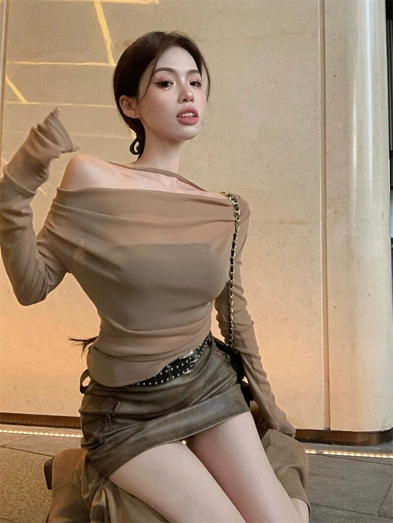 メイラードは春にオフショルダーの長袖セーターを着ており、薄くて不規則で純粋な欲望を持っており、スリムフィットのインナーレイヤリングトップを着ています。 ロング スプリング 春物 ピュア berry14286302000 | beaute25