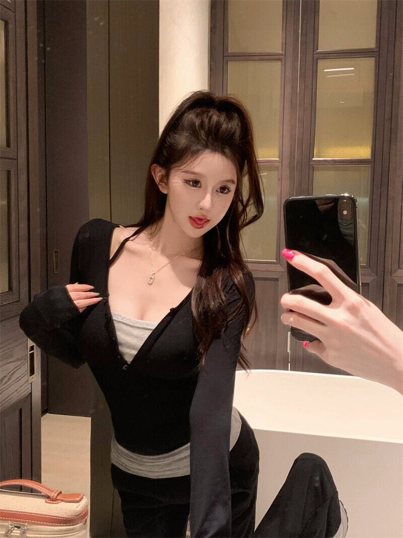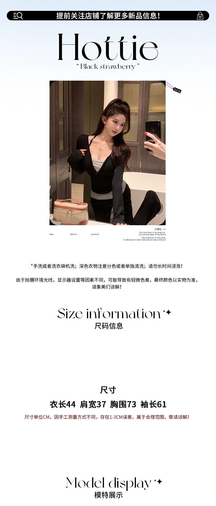 ホットブラックフェイクツーピースvネックホルターネック長袖セーター女性初春スリムフィットショートインナーレイヤードシャツトップ ロング レッド スプリング 春物 berry90524052705 | beaute25