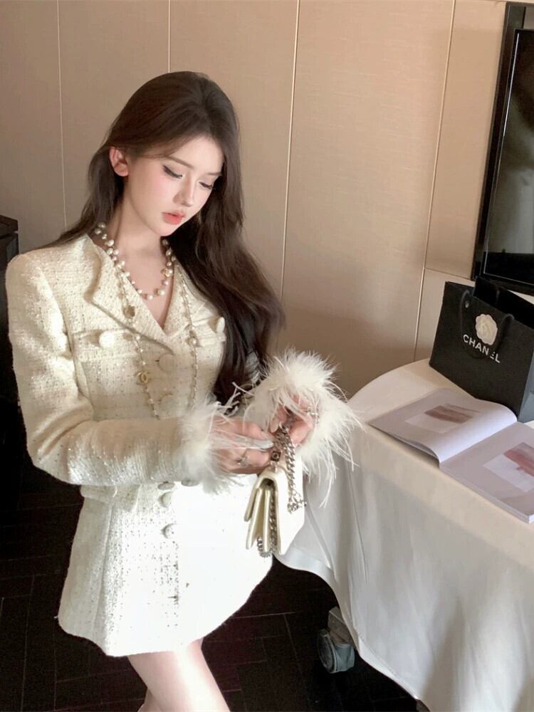 Xiaoxiangfeng 編組ブレザー レディース 冬のハイエンドでエレガントな女性のスリムフィット ミドル丈の毛皮のようなパッチワーク トップ ウィンター 冬物 berry71020840705 | beaute25