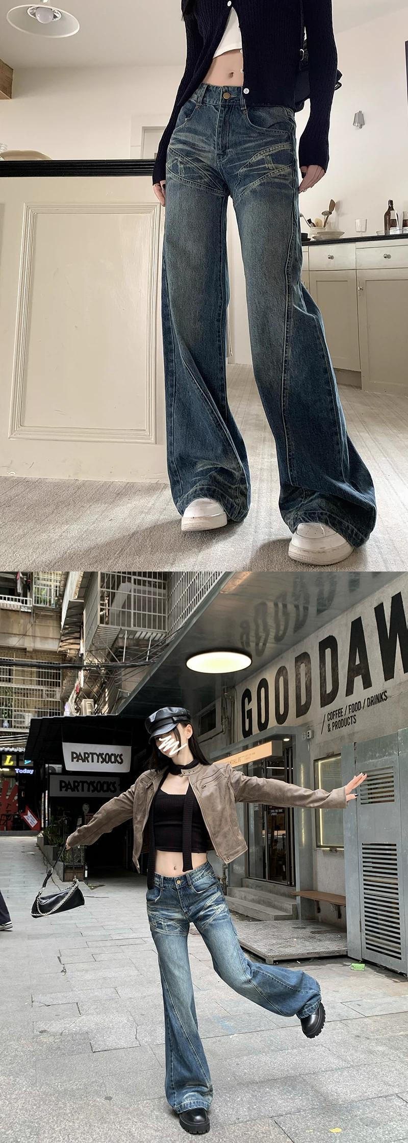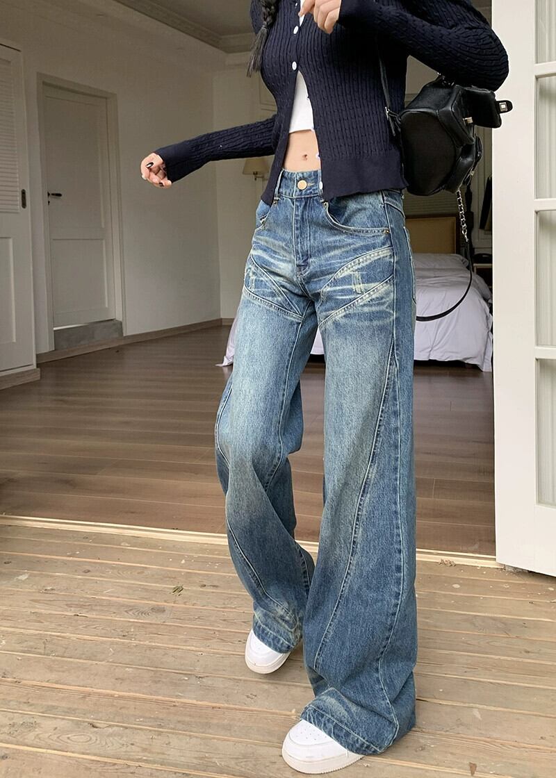 夏用アメリカンレトロジーンズレディース、ローウエスト、脚にフィットしない、マイクロフレアパンツ、ストレート、ルーズ、ワイドレッグ、フロアレングスパンツ レッド サマー 夏物 berry1420584582 | beaute25