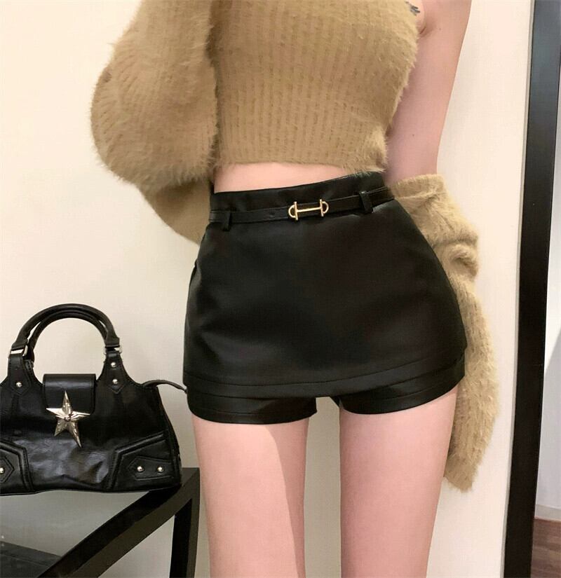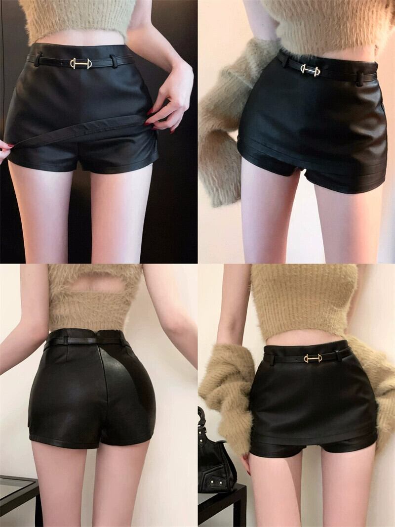 黒 pu レザー キュロット カジュアル ショーツ レディース 春ハイウエスト タイト ストレート パンツ セクシーな a ライン ヒップカバー パンツ ハイウェスト ブラック スプリング 春物 ブルマー Aライン berry64332282734 | beaute25