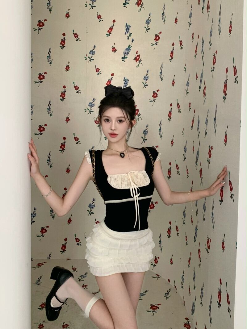 甘いスーツセクシーなキャミソールトップ女性の夏のレースふわふわスカートスカート 2 点セット 大人ガーリー スウィート キュート カジュアル サマー 夏物 berry96341187367 | beaute25