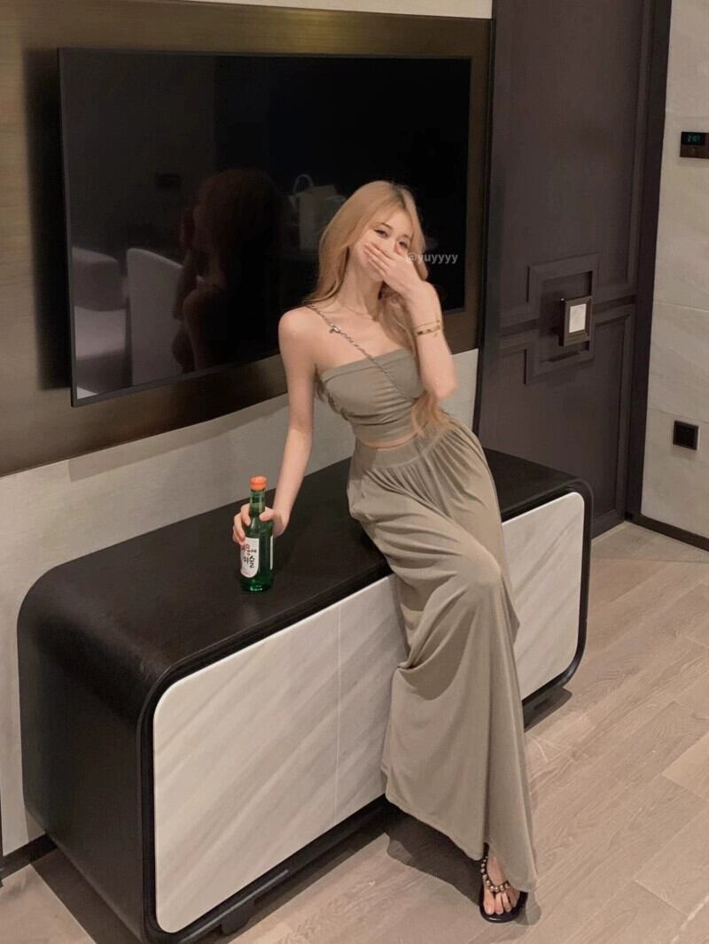 純粋な欲望スタイルのセクシーなチューブトップベストスーツ女性の夏のハイウエストドレープスカートロングスカートツーピースセット ハイウェスト サマー 夏物 berry61112898818 | beaute25