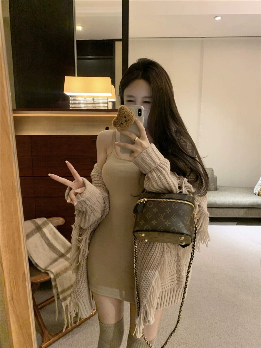 色:白いカーディガン,カーキカーディガン,グレーのカーディガン,胸パッド付きの白いスカート,カーキのスカートには胸パッドが付いています