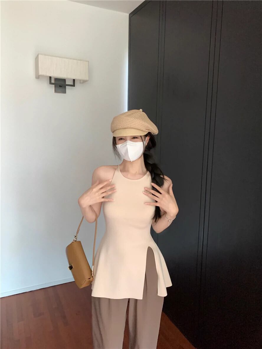 アプリコットニット小さなキャミソール女性の夏の純粋な欲望スタイルセクシーなミッドレングスウエスト痩身スリットノースリーブトップ サマー 夏物 ピュア berry20550931321 | beaute25