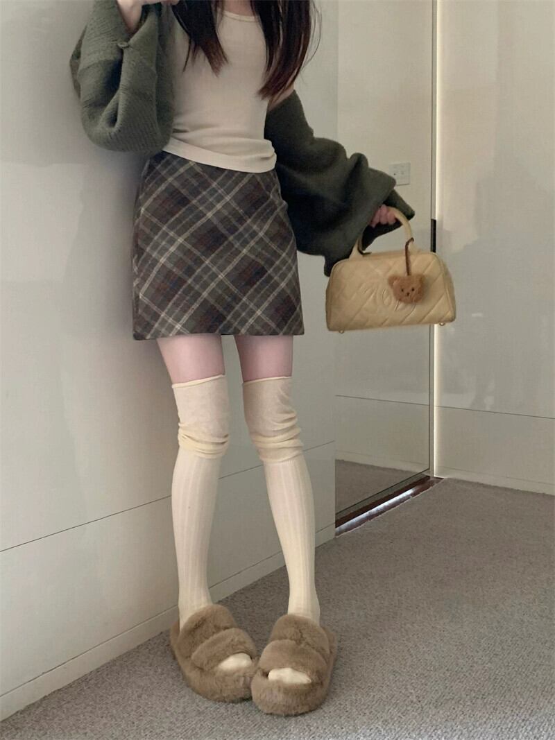 チェック柄ウールスカートレディース春レトロチェック柄スカートハイウエスト痩身 A ラインスカートウールヒップハグショートスカート ハイウェスト スプリング 春物 Aライン berry95743060921 | beaute25