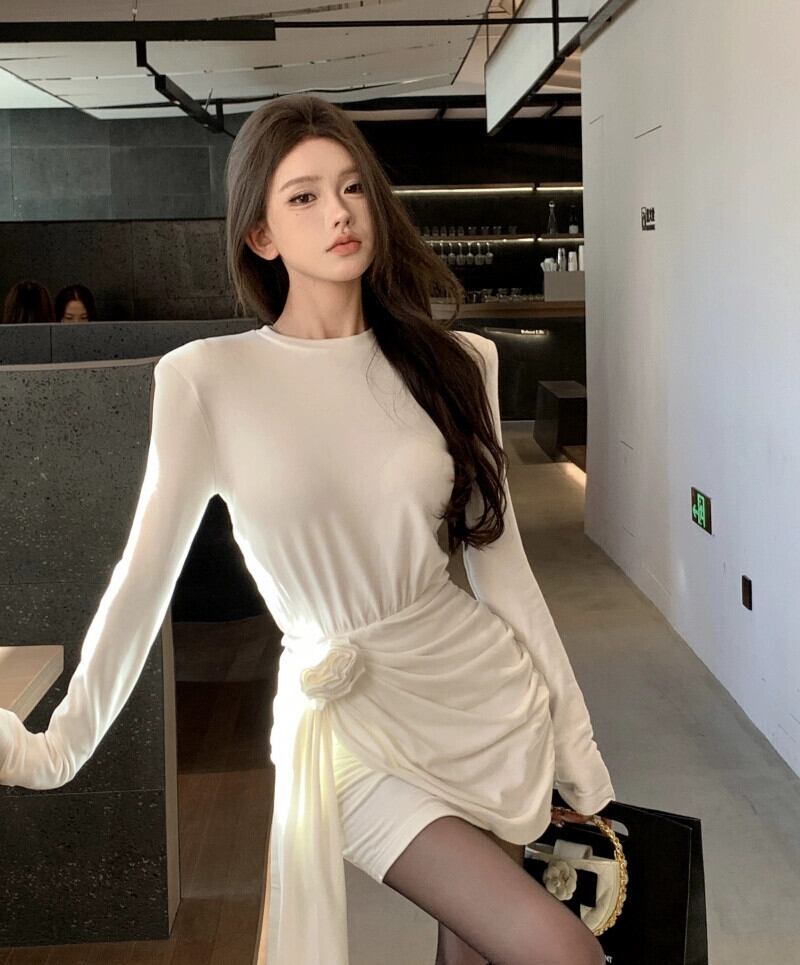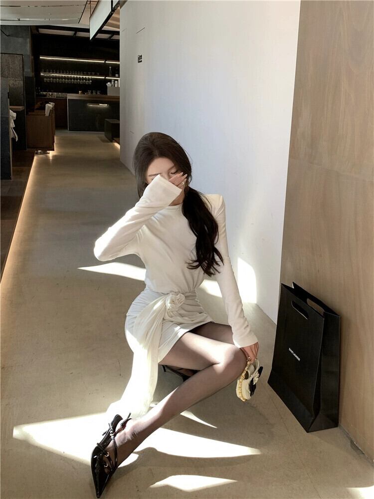 立体花Tシャツドレス女性の春の気質ロイヤルシスタースタイルインナースカート白いウエスト抱きショートスカート ホワイト スプリング 春物 フラワーデザイン berry53095542339 | beaute25