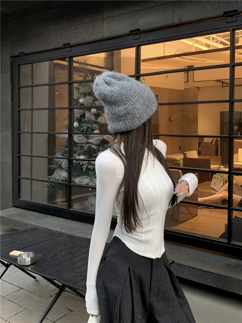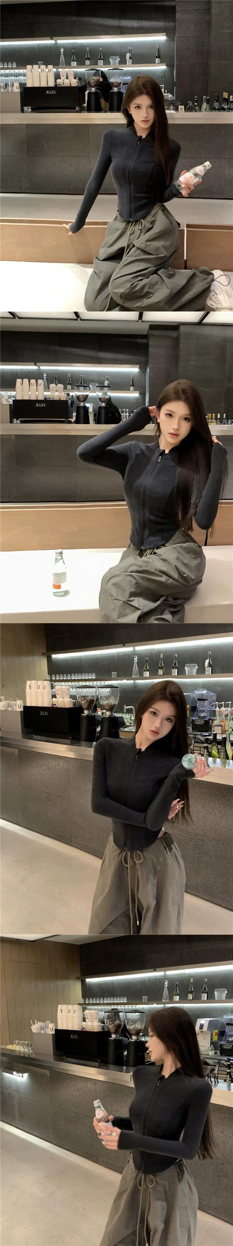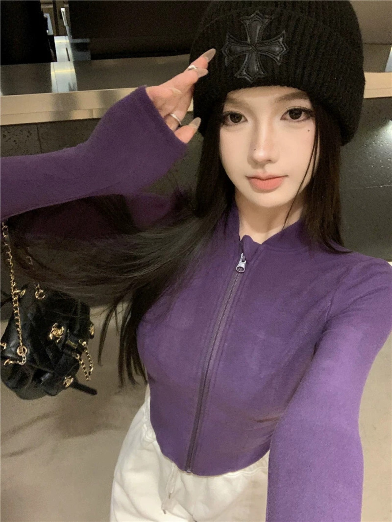 ドイツベルベットスタンドカラージッパーカーディガントップ女性春デザイン長袖Tシャツパープルスリムインナーレイヤリングシャツ ロング スプリング 春物 berry52603042169 | beaute25