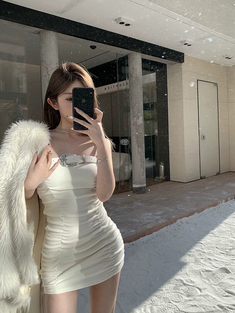 ED スプライシング ベルト サスペンダー ドレス レディース 春スタイル インナー プリーツ タイト ヒップハグ ショート スカート スプリング 春物 ハーネス berry5485008230 | beaute25