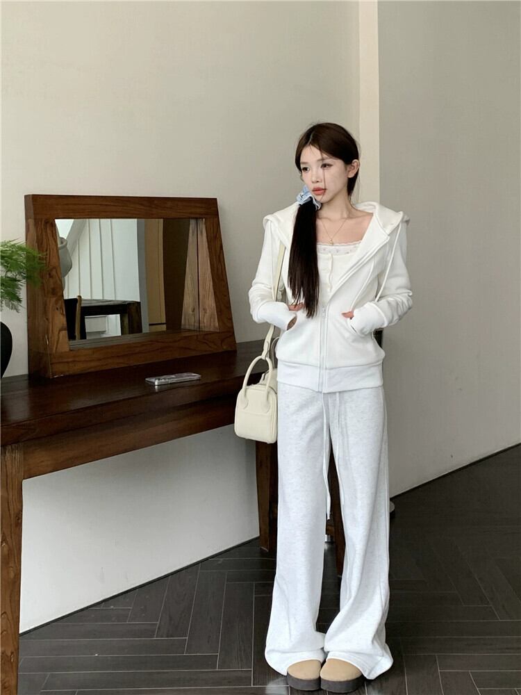 色:乳白色のセーター,ピンクのセーター,グレーのセーター,ライトグレーパンツ