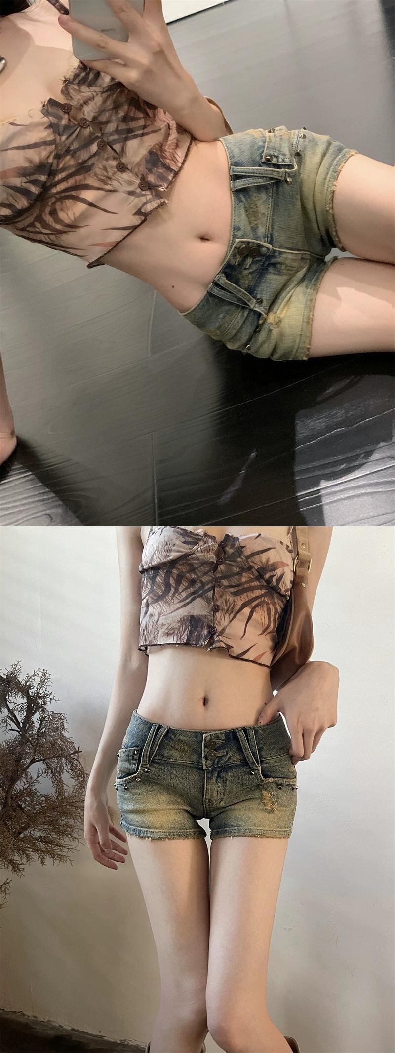 ライトカラーのレトロデニムスーパーショートパンツの女性、夏のイントレンドハイストリートウォッシュローウエストの小さなヒップカバーパンツ レッド サマー 夏物 ショーツ ブルマー berry8327536475 | beaute25
