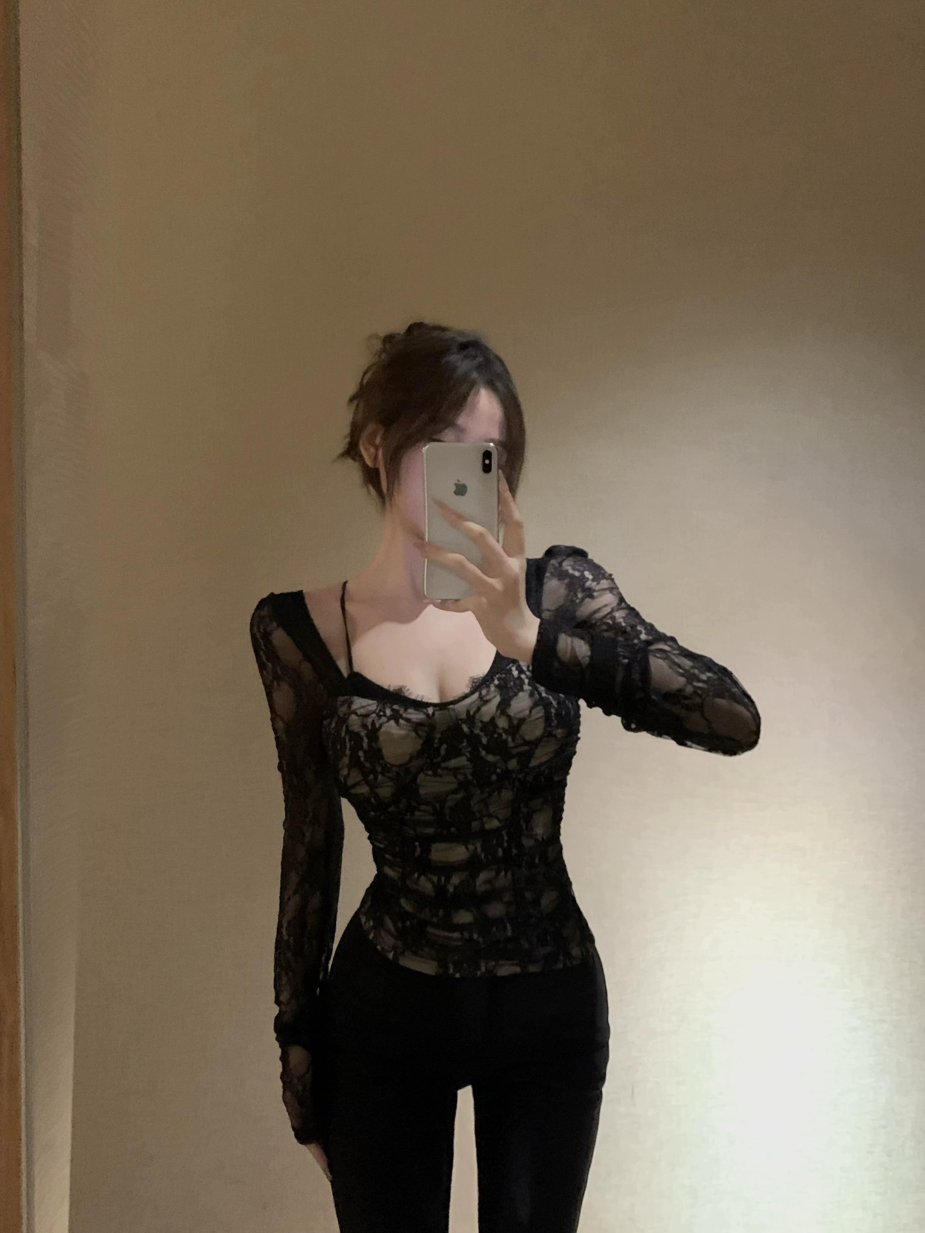 Pure lust スタイル レース シースルー バックレス V ネック Tシャツ レディース 春 ウエスト痩身 長袖 インナー レイヤード ニッチ ボトリング シャツ トップス ロング レッド スプリング 春物 Vネック berry76617498705 | beaute25