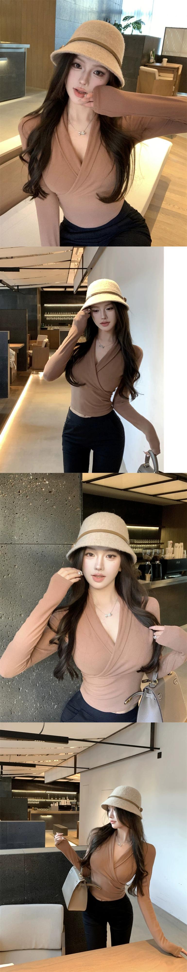 スタイルジェントルスタイルクロスvネック長袖tシャツ女性2024年初春の新しいスタイルウエストショートスタイルレディボトリングシャツトップ ロング スプリング 春物 berry92044267774 | beaute25